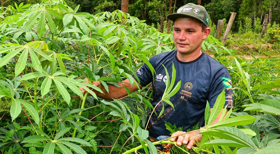 Na lavoura, também houve alteração na produtividade. Antes do acompanhamento técnico, a média era de aproximadamente três quilos por pé de mandioca. Ao final do ciclo, a produção alcançou cerca de seis quilos por planta, com ajustes na adubação e no manejo do solo.
