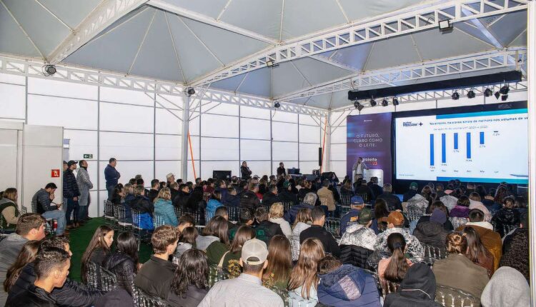 A programação técnica continua com a palestra de Mônica Jasper sobre sucessão familiar em tempos de inteligência artificial, seguida pela apresentação de Sérgio Bettin sobre sistemas de ordenha robotizada. Às 13h40, o Pavilhão Agroleite recebe a quinta ordenha oficial do Torneio Leiteiro, um dos momentos mais esperados do dia.