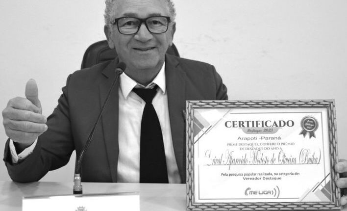 A cidade de Arapoti está em luto pela morte do vereador Lorival Aparecido Modesto de Oliveira, conhecido como ‘Buika’, falecido na manhã desta terça-feira (15), aos 58 anos.