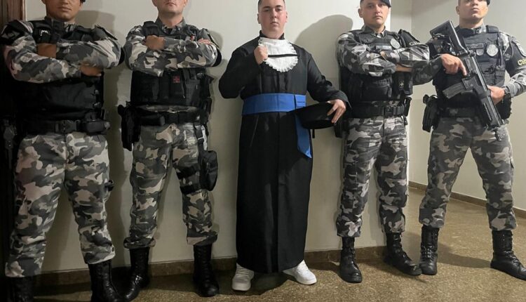 Atendendo ao pedido especial, quatro policiais do Choque marcaram presença no evento, surpreendendo não apenas o formando, mas também os convidados, que se emocionaram com o gesto de respeito e proximidade.