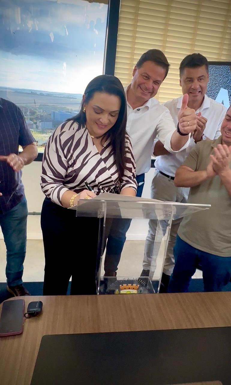 Carambeí – A Prefeitura Municipal oficializou, na quinta-feira (26), a assinatura do convênio para a pavimentação asfáltica da Estrada da Santa Cândida, uma das obras mais aguardadas pela comunidade local. A cerimônia contou com a presença da prefeita Elisangela Pedroso, do secretário de Estado de Infraestrutura e Logística, Sandro Alex — representando o governador Ratinho Junior — e do deputado estadual Marcelo Rangel (PSD).