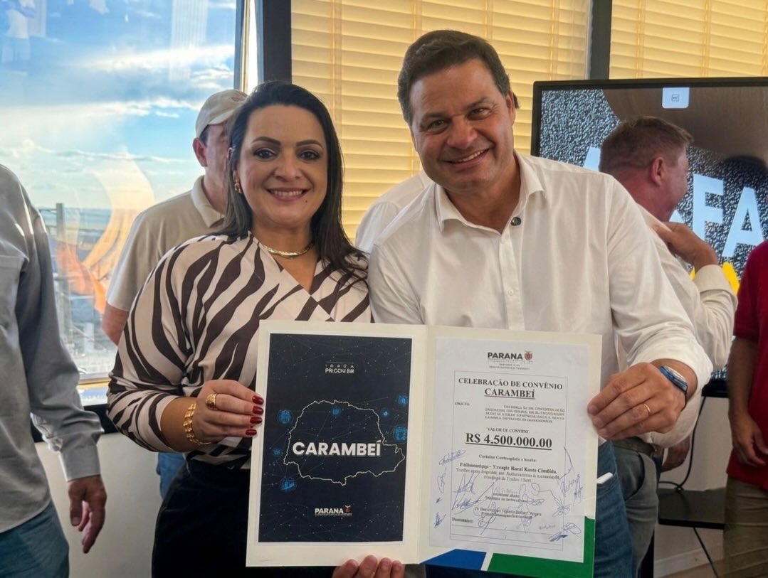 Carambeí – A Prefeitura Municipal oficializou, na quinta-feira (26), a assinatura do convênio para a pavimentação asfáltica da Estrada da Santa Cândida, uma das obras mais aguardadas pela comunidade local. A cerimônia contou com a presença da prefeita Elisangela Pedroso, do secretário de Estado de Infraestrutura e Logística, Sandro Alex — representando o governador Ratinho Junior — e do deputado estadual Marcelo Rangel (PSD).