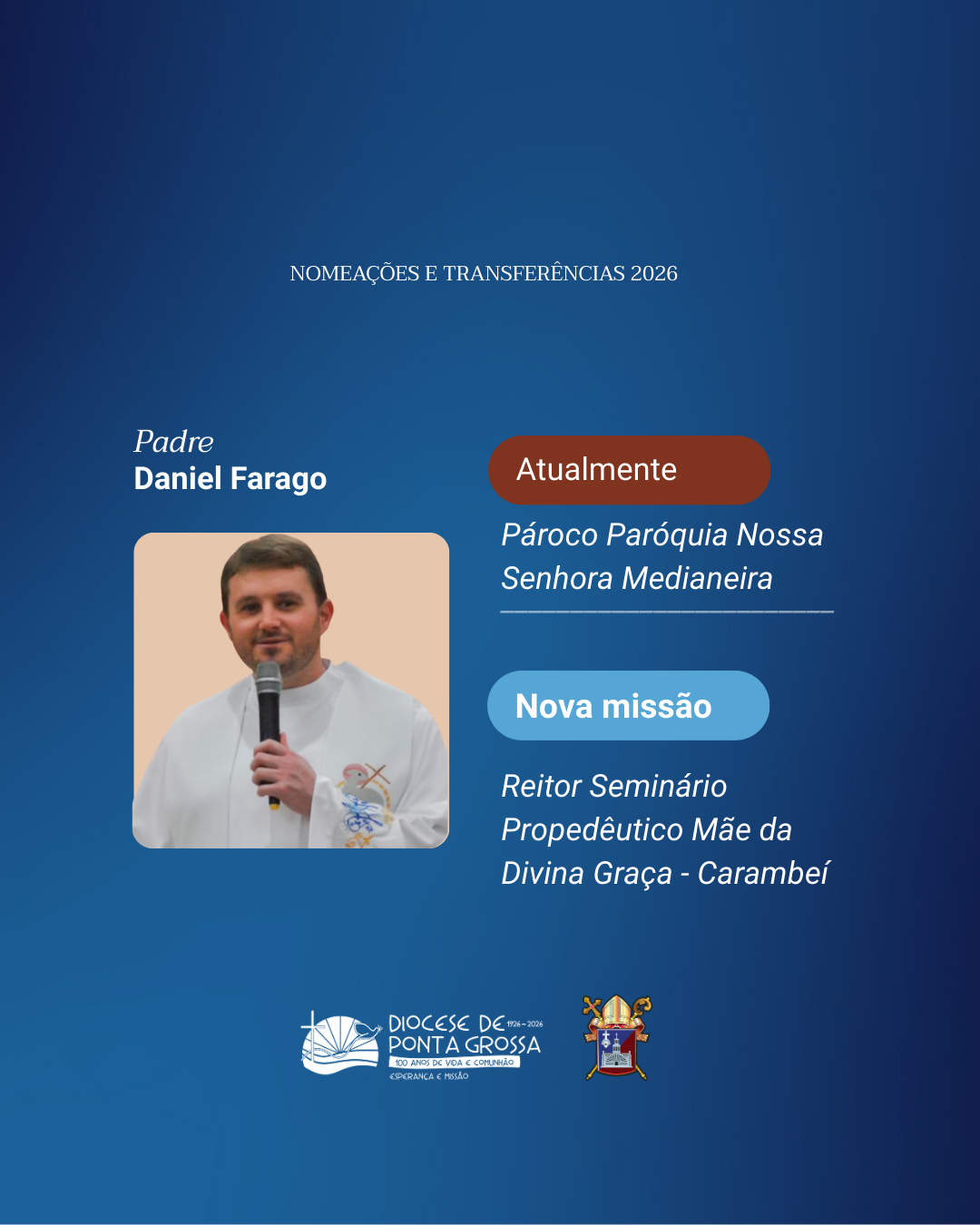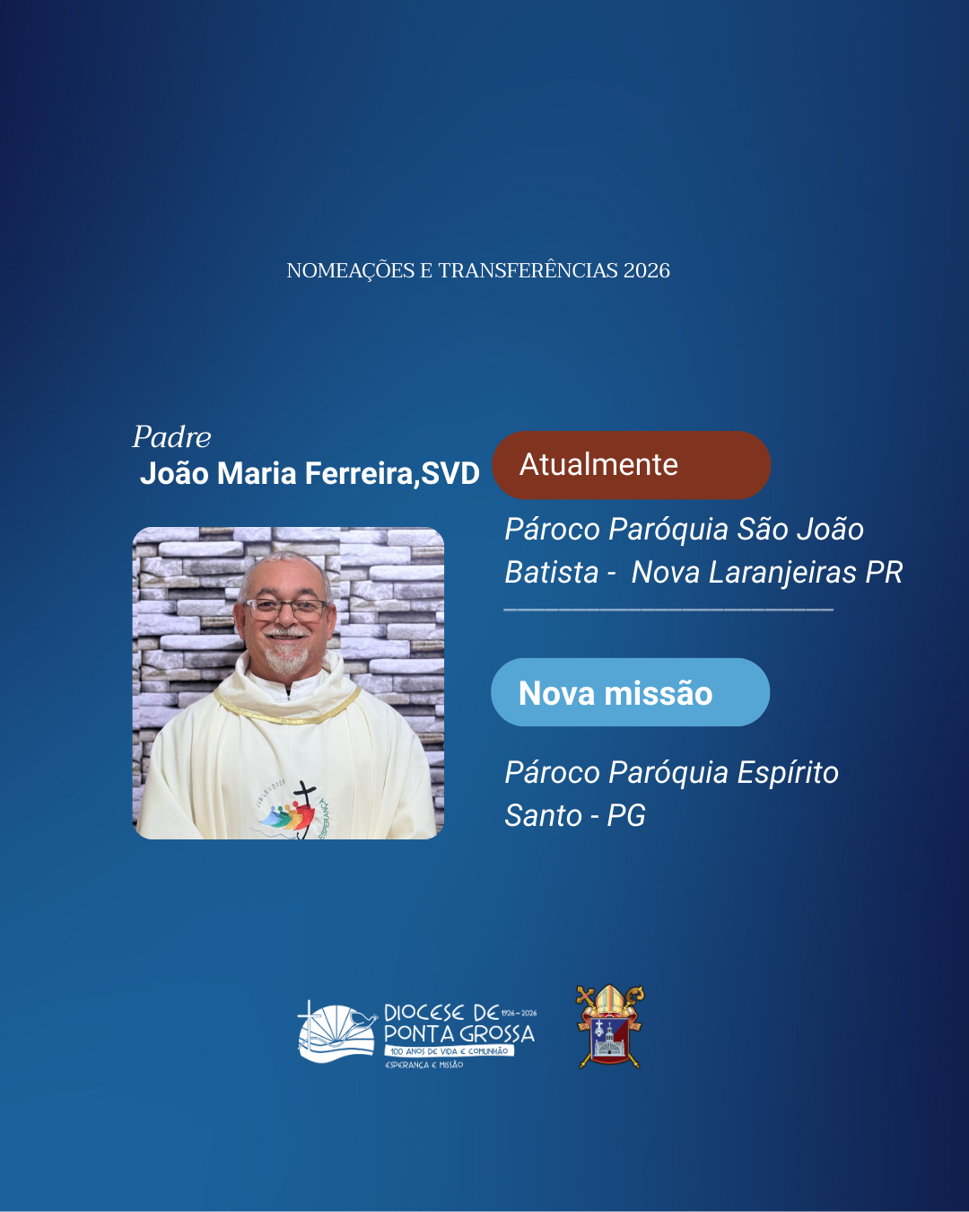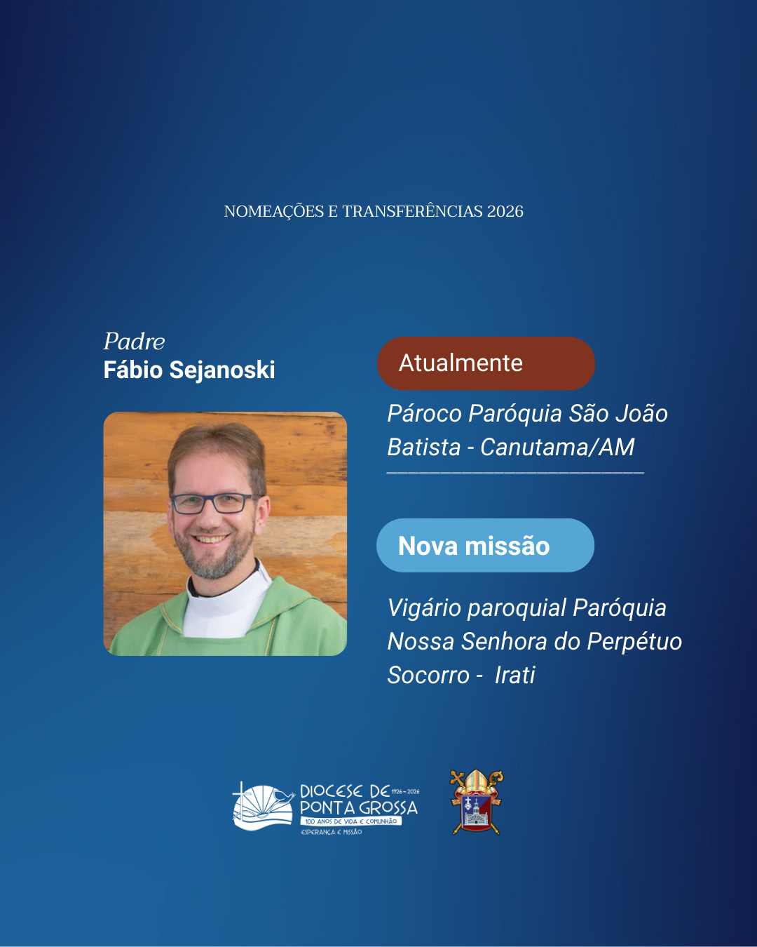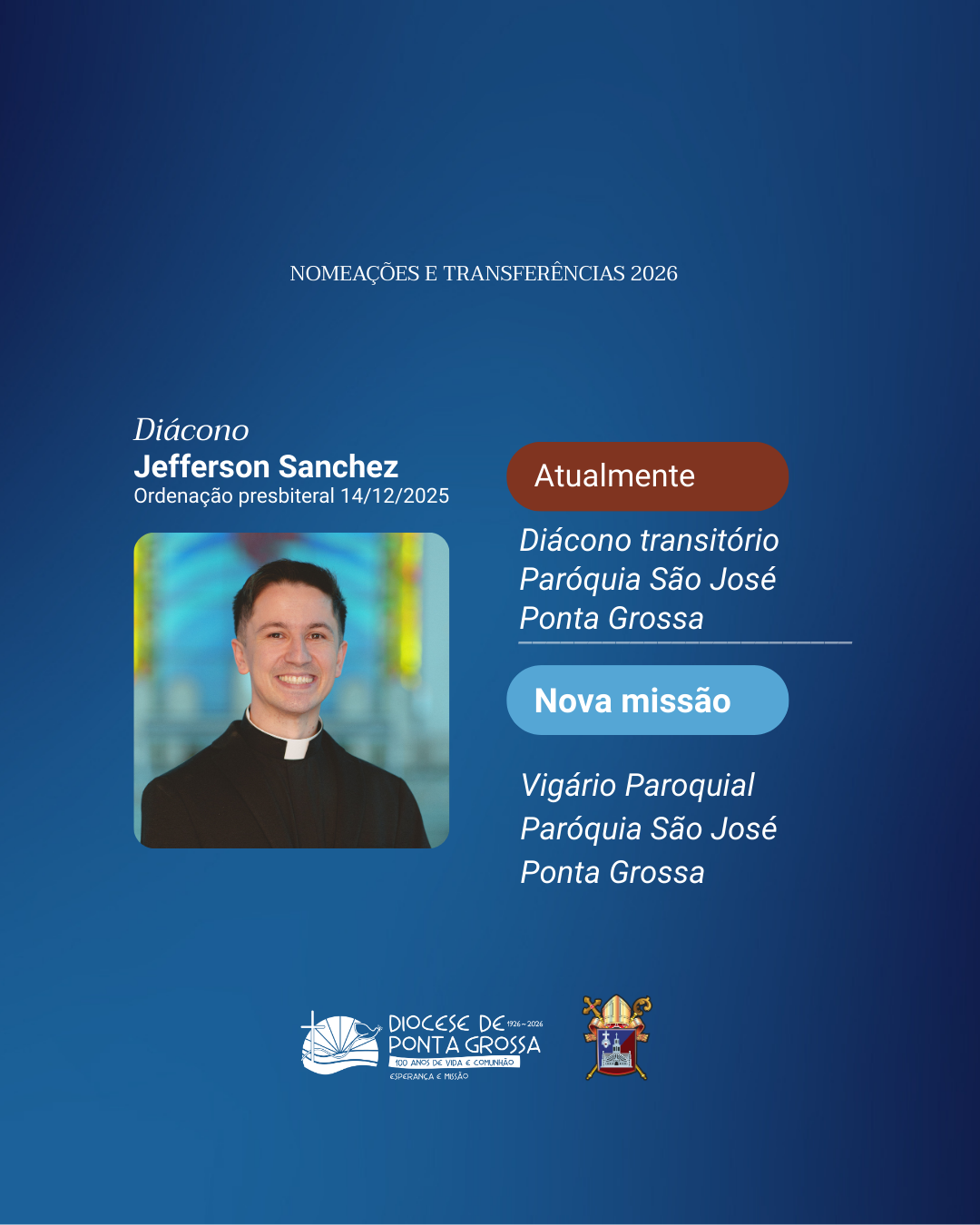 Vivemos um momento de graça na Diocese de Ponta Grossa: mudanças no clero, novos desafios e a expansão da estrutura paroquial, tudo guiado pelo desejo de servir ao povo com mais proximidade e carinho. Que cada mudança seja acolhida com fé e esperança, percebendo ao pastor que chega o dom de Deus, e à comunidade uma oportunidade de renovação espiritual e missão conjunta.