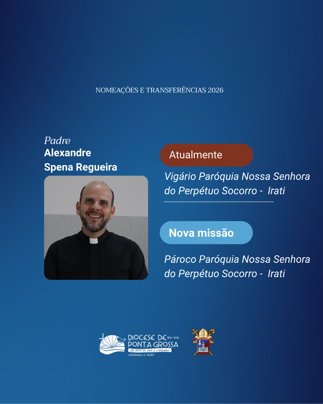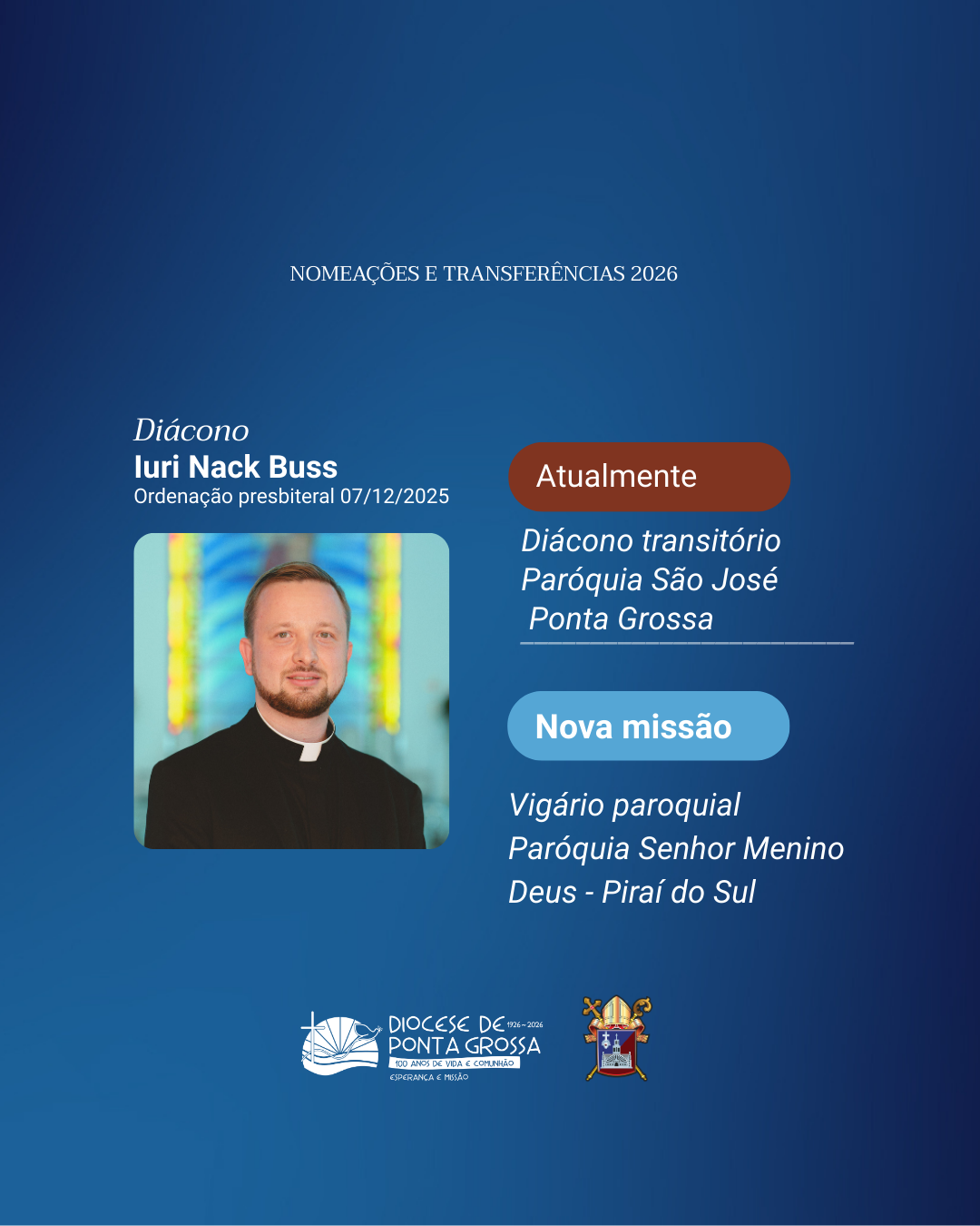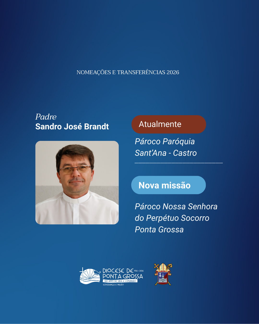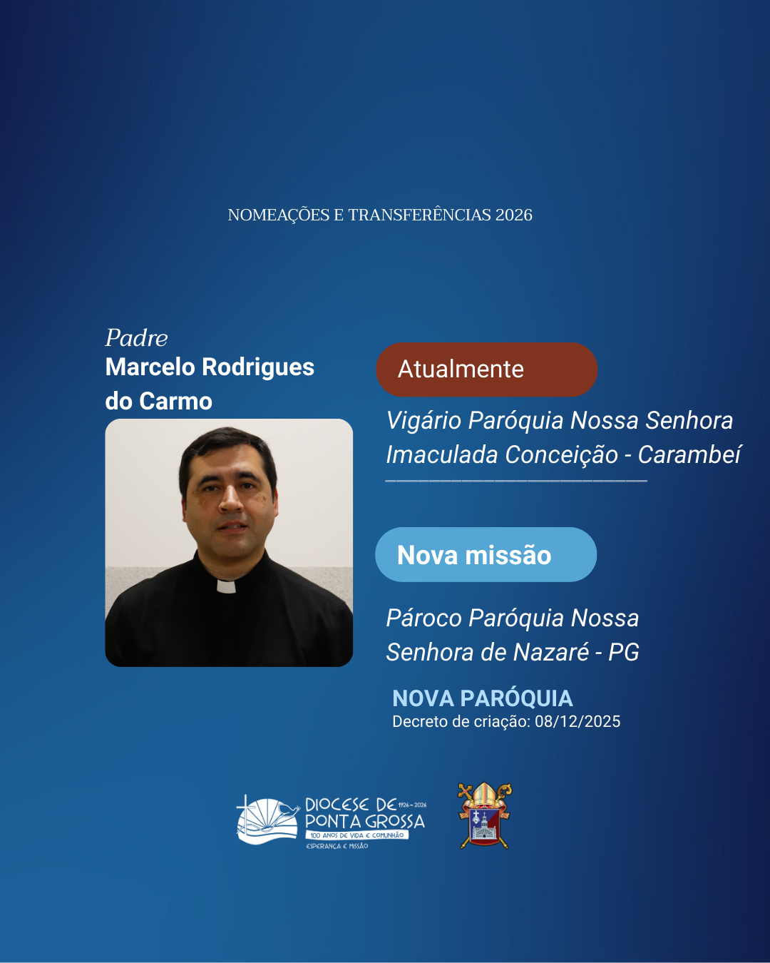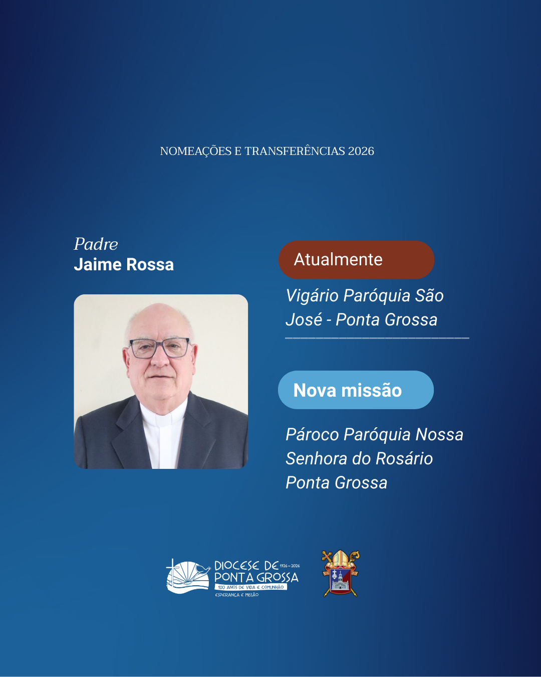 Vivemos um momento de graça na Diocese de Ponta Grossa: mudanças no clero, novos desafios e a expansão da estrutura paroquial, tudo guiado pelo desejo de servir ao povo com mais proximidade e carinho. Que cada mudança seja acolhida com fé e esperança, percebendo ao pastor que chega o dom de Deus, e à comunidade uma oportunidade de renovação espiritual e missão conjunta.