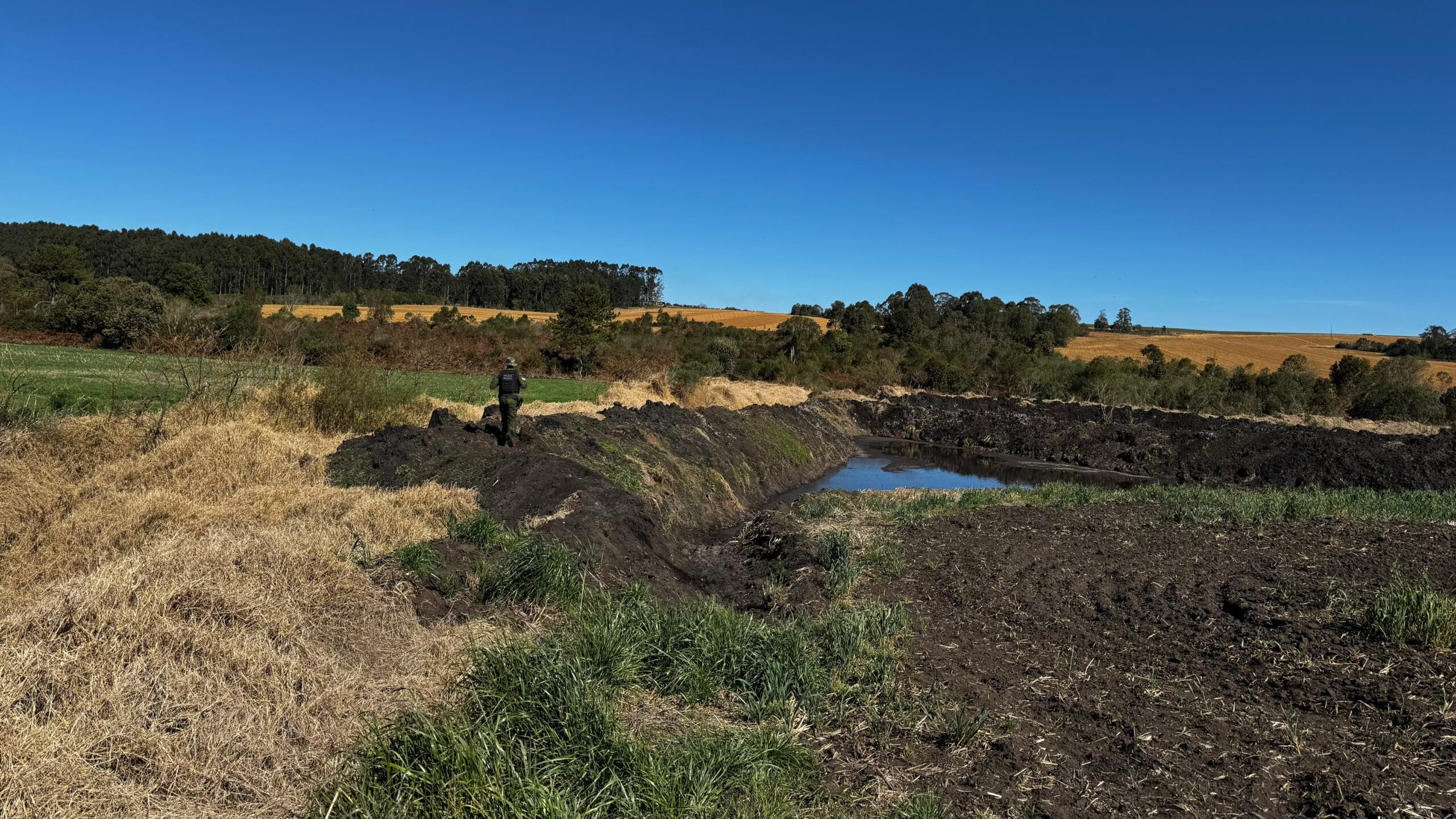 No período da manhã, as equipes vistoriaram uma propriedade rural, mas não encontraram irregularidades. Já à tarde, identificaram o local responsável pelo crime ambiental. Além da poluição, os policiais constataram a abertura de valetas e a construção de um tanque de contenção de dejetos de forma irregular.