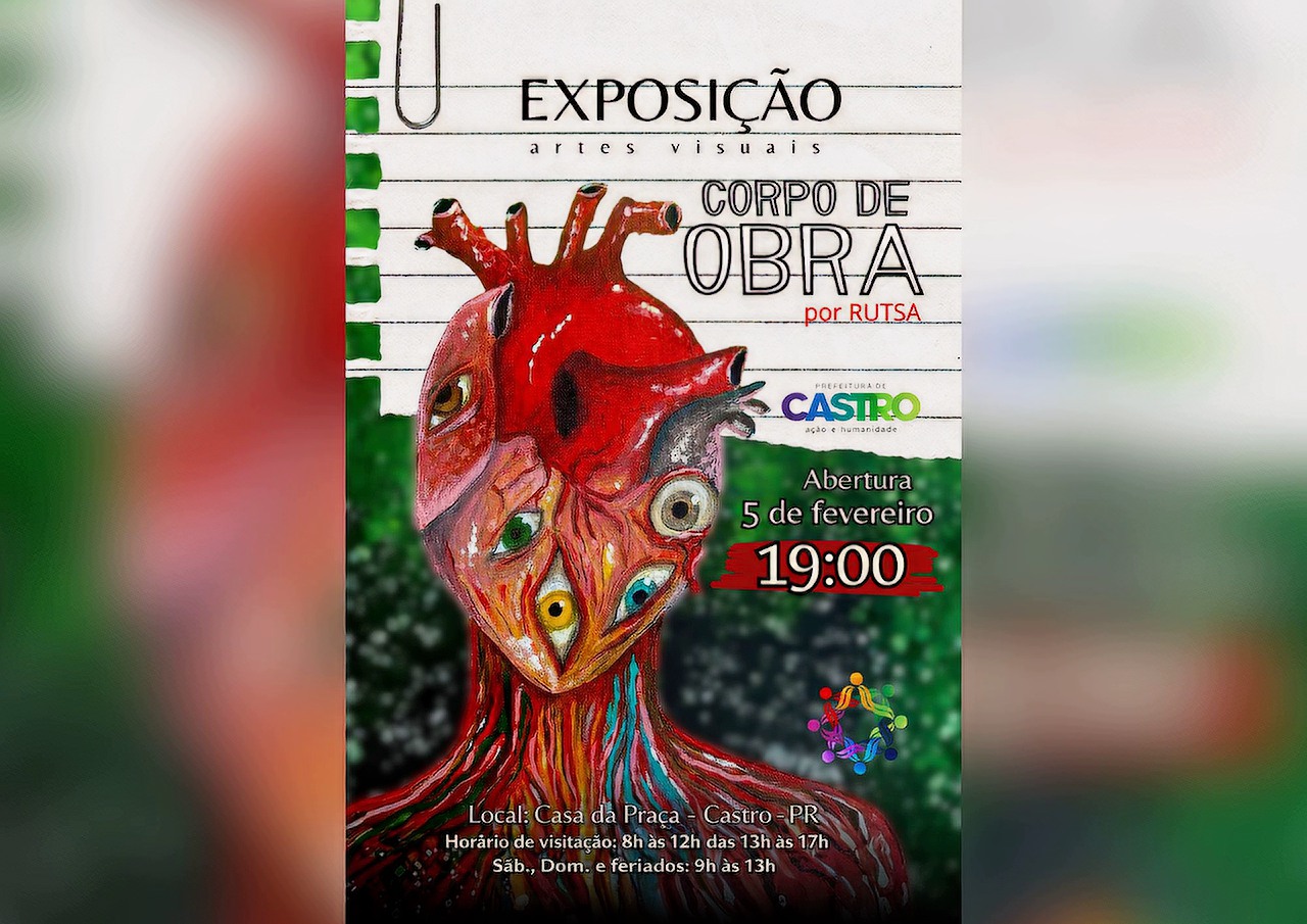 Castro – A Casa da Praça abre suas portas no dia 5 de fevereiro de 2026, às 19h30, para a exposição “Corpo de Obra”, da artista visual Rutsa. A mostra faz parte da programação cultural de 2026 da Secretaria Municipal de Cultura, com apoio da Prefeitura Municipal, e reúne um amplo conjunto de trabalhos que atravessam diferentes momentos da trajetória da artista, criando uma experiência imersiva que privilegia sensações, tensões e afetos, em vez de uma narrativa cronológica.