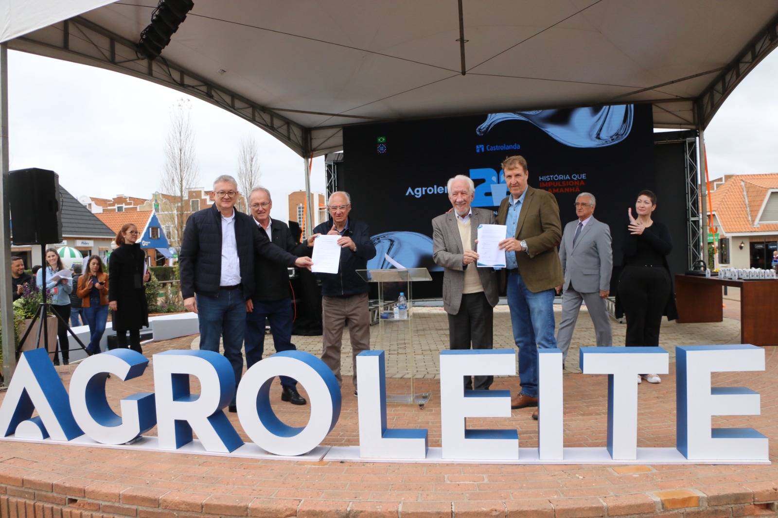 Castro – Conquistar a Indicação Geográfica do Leite de Castro é o objetivo da parceria firmada nesta terça-feira (05) entre a Prefeitura, Governo do Estado e Cooperativa Castrolanda. O termo de cooperação e intenções entre as três entidades foi assinado pelo prefeito Reinaldo Cardoso, vice-governador Darci Piana e pelo presidente da Cooperativa, Willem Bouwman, durante a solenidade de abertura do Agroleite, que vai até sexta-feira (08) no Expotrade Castrolanda.