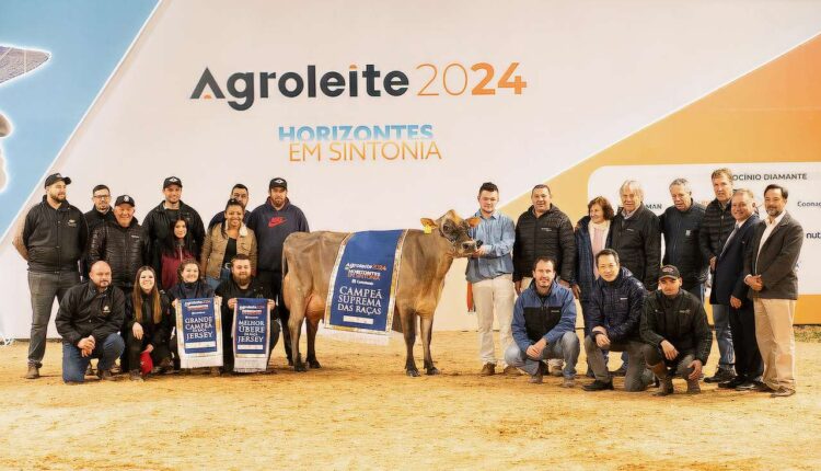 A Campeã Suprema das Raças, melhor animal do Agroleite 2024- Horizontes em Sintonia, foi a vaca Nanda Celebrity Aviostoso, do expositor Carlos Jacob Wallauer de Salvador do Sul-RS. Com um currículo impressionante de conquistas, Nanda já havia sido premiada como Campeã Vaca Adulta e Melhor Úbere na Expointer 2021, Campeã Vaca Longeva e Melhor Úbere na Fenasul 2022, Reservada Grande Campeã Jersey em 2022, Reservada Vaca Longeva na Expoagro Cotricampo 2023, e Reservada Vaca Longeva na Fenasul 2023.