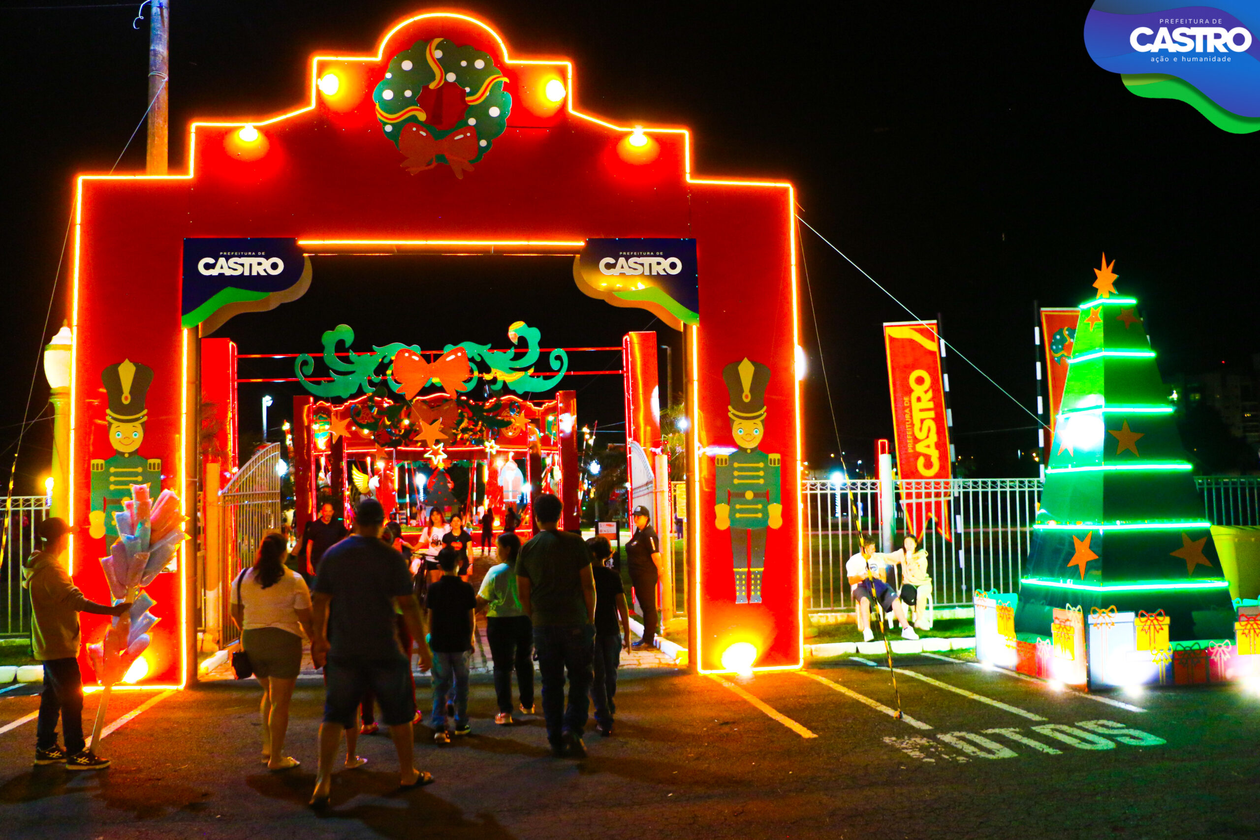 Entre as atrações mais concorridas esteve o Trem do Natal, que circulou pelas ruas de Castro durante todo o período do evento, com horários ampliados nos fins de semana. Dentro do Parque Lacustre, o Mini Trem complementou o passeio, garantindo diversão contínua para crianças e adultos. A estrutura do espaço incluiu ainda praça de alimentação em funcionamento diário e horários estendidos de visitação à Casa do Papai Noel.
