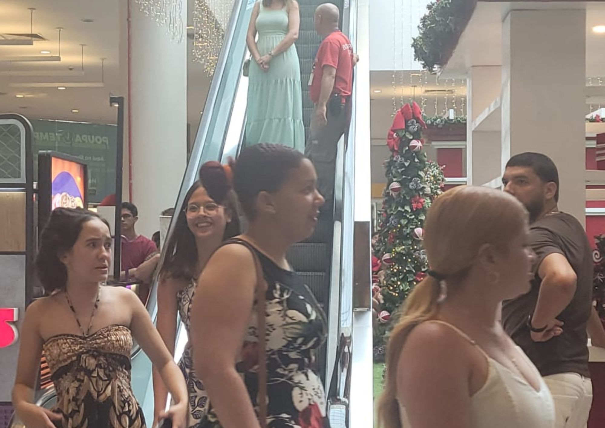 Mulher tem vestido enroscado em escada rolante do Shopping Paladium