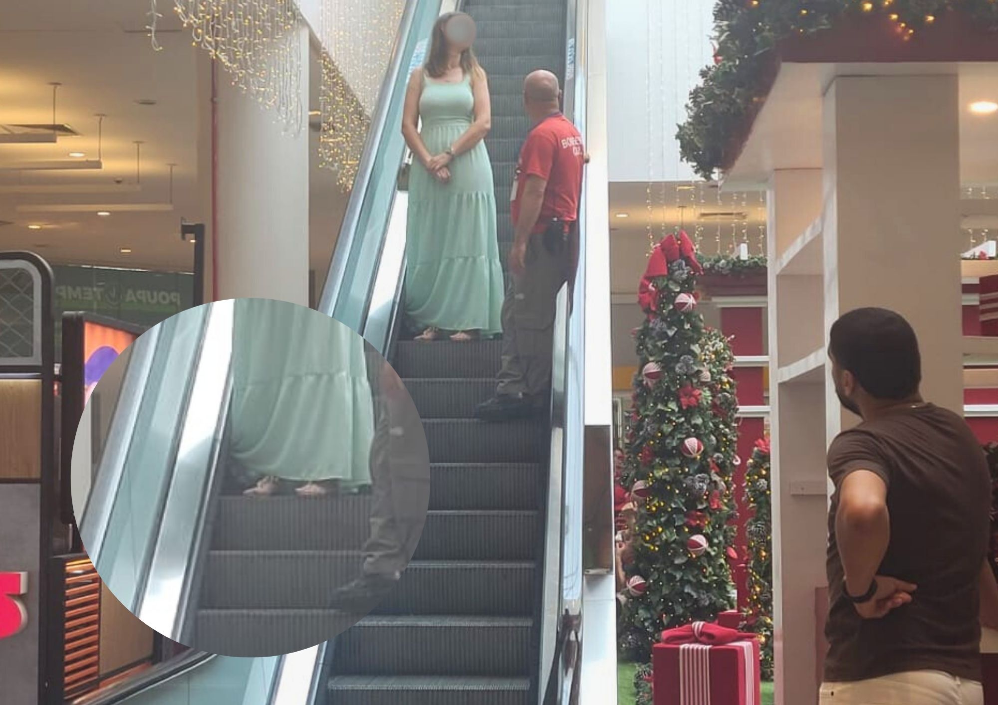 Mulher tem vestido enroscado em escada rolante do Shopping Paladium