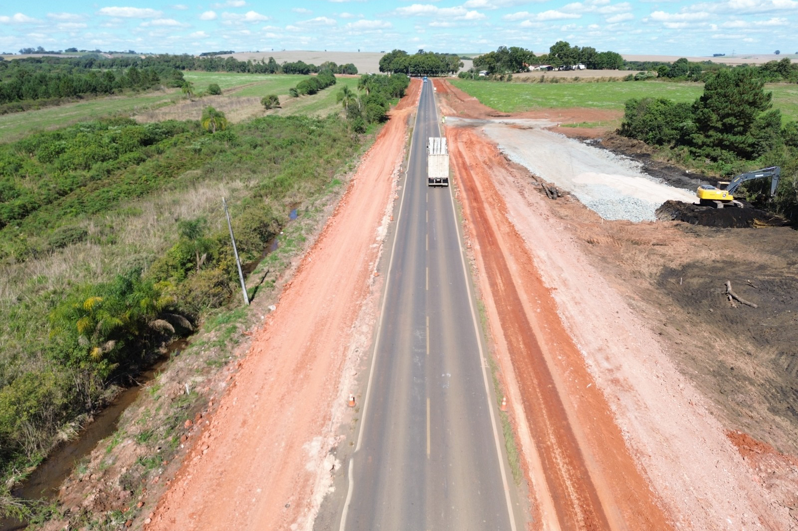 Palmeira – A Castilho Engenharia e Empreendimentos S/A, em conjunto com o Departamento de Estradas de Rodagem do Paraná (DER/PR), informou que estão em andamento as obras de terraplanagem e pavimentação em concreto na rodovia PR-151, no trecho que liga Palmeira a Ponta Grossa, nos Campos Gerais.