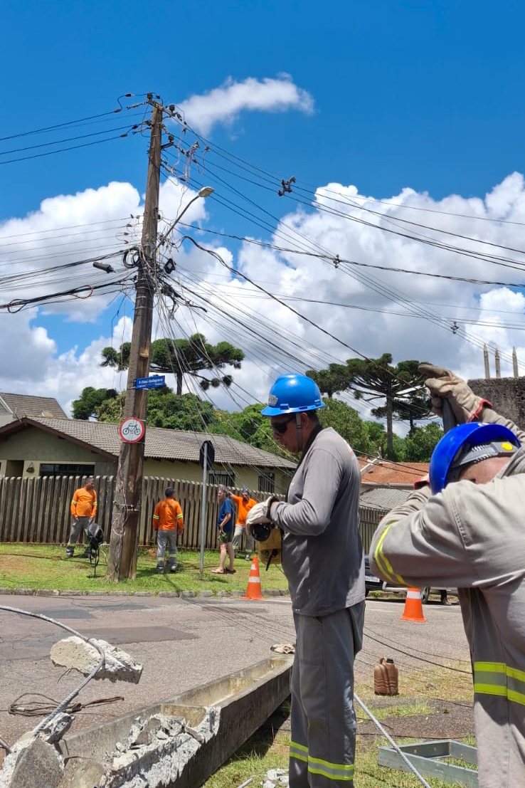 Além dos danos materiais, a Copel orienta que a segurança seja sempre prioridade. Em casos em que cabos fiquem sobre o veículo ou caídos no chão, o motorista deve permanecer dentro do automóvel e acionar a concessionária pelo telefone 0800 51 00 116. Em situações extremas, que exijam a saída imediata do veículo, a recomendação é abandonar o local com os pés juntos e se afastar em pequenos saltos, evitando o risco da chamada “tensão de passo”.