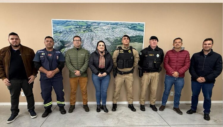 Durante a reunião, foram discutidas estratégias e demandas relacionadas à segurança pública local, com foco no fortalecimento da atuação conjunta entre a administração municipal e as forças de segurança.
