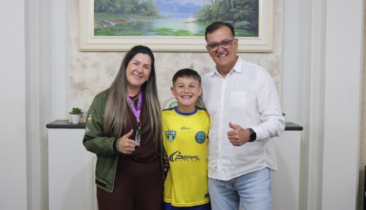 Tibagi – O prefeito Rildo Leonardi recebeu ontem (23) o jovem atleta tibagiano Pedro Mizerski no gabinete. O encontro contou ainda com a presença do pai do jogador, Rodrigo Mizerski, e da secretária de Esportes e Recreação Orientada, Maxsuelly da Silva Lipke.