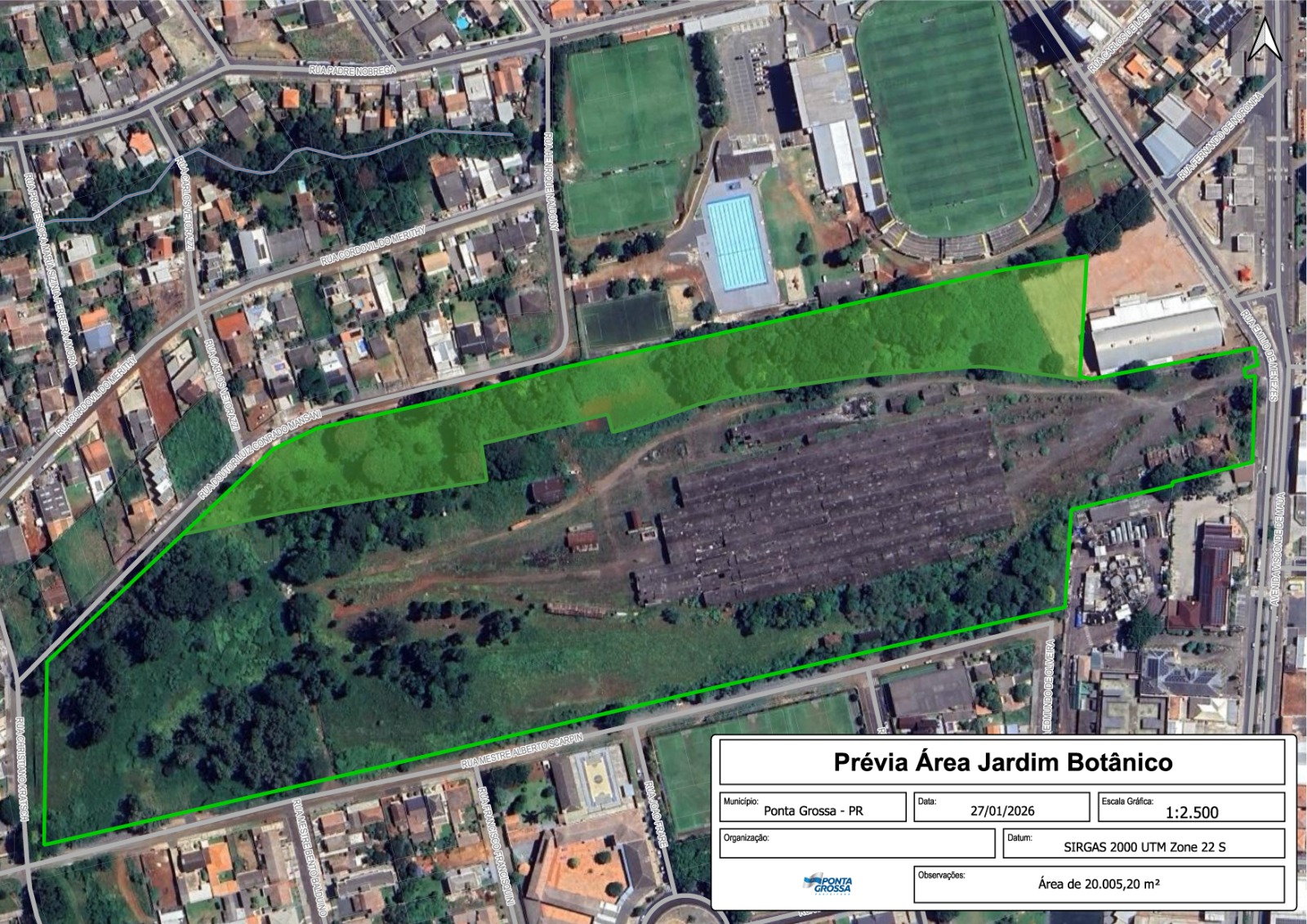 O município passa a contar com um espaço de aproximadamente 21 mil metros quadrados, localizado no bairro de Oficinas, entre os fundos do Estádio Germano Krüger e as históricas instalações da rede ferroviária. No local será implantado o primeiro Jardim Botânico de Ponta Grossa, considerado pela administração municipal um projeto estratégico para a revitalização da região.