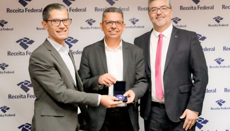 Ponta Grossa – A Universidade Estadual de Ponta Grossa foi homenageada pelo delegado da Receita Federal no município, Remy Deiab Junior. O reitor Miguel Sanches Neto e o vice-reitor Ivo Mottin Demiate receberam uma placa comemorativa e uma medalha de honra. O evento aconteceu na tarde de quinta-feira (27).