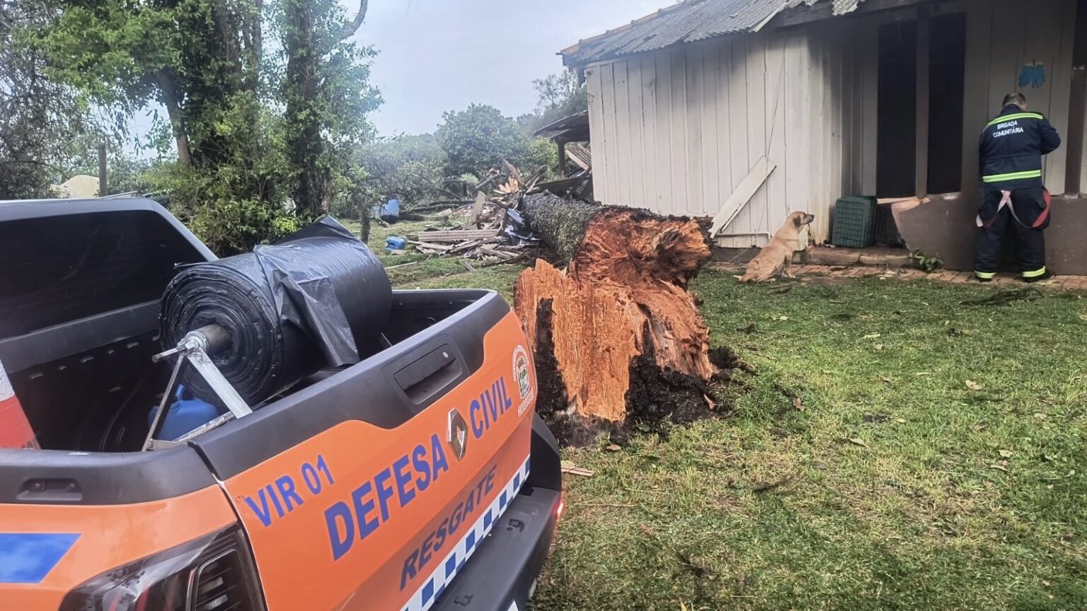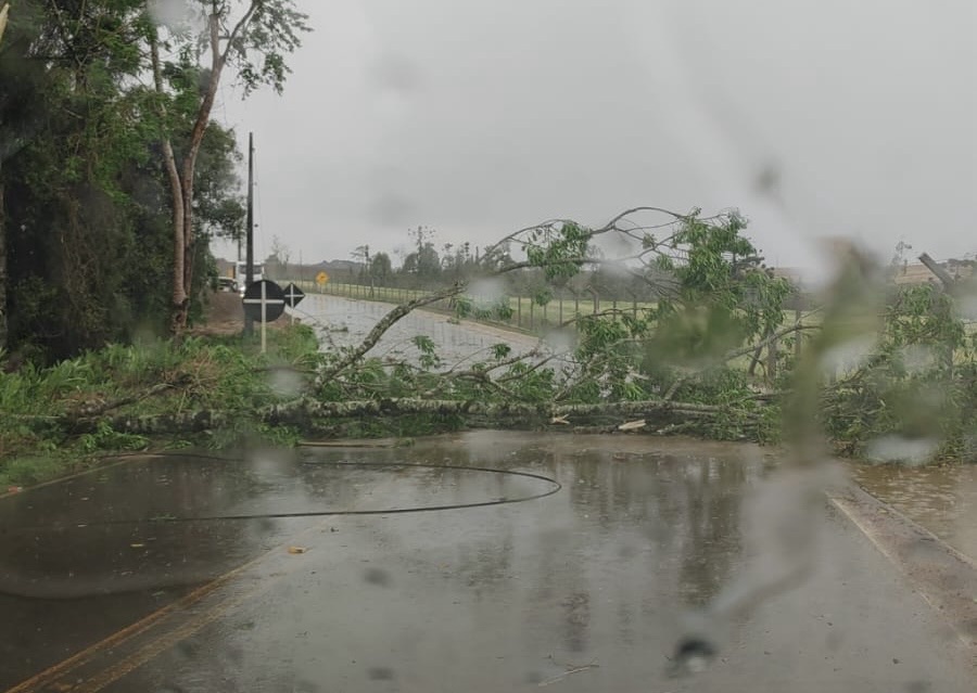 Ao longo do trajeto até a cidade, o cenário era de galhos, folhas e sujeira espalhados pelas vias. Na Colônia, além da sujeira, casas e barracões tiveram os telhados danificados. A cena mais impressionante foi registrada na região, quando uma araucária caiu sobre um Chevrolet Prisma que estava estacionado em uma garagem. Apesar do impacto, ninguém ficou ferido.