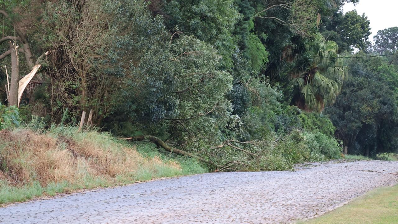 Ao longo do trajeto até a cidade, o cenário era de galhos, folhas e sujeira espalhados pelas vias. Na Colônia, além da sujeira, casas e barracões tiveram os telhados danificados. A cena mais impressionante foi registrada na região, quando uma araucária caiu sobre um Chevrolet Prisma que estava estacionado em uma garagem. Apesar do impacto, ninguém ficou ferido.