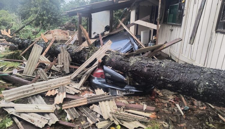Araucária caiu sobre veículo na Colônia, mas ninguém ficou ferido; Prefeitura mobiliza equipes para atender famílias afetadas