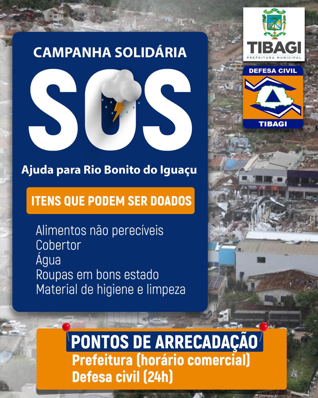 Tibagi – A Prefeitura do município iniciou uma campanha de arrecadação para auxiliar as famílias de Rio Bonito do Iguaçu, município do Paraná que foi devastado por um tornado com ventos de até 250 km/h. A tragédia deixou pelo menos cinco mortos e destruiu cerca de 90% da cidade, atingindo casas, comércios e prédios públicos, segundo o Coronel Hudson, secretário da Segurança Pública do Paraná.