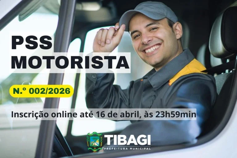 Tibagi – A Prefeitura de Tibagi abre o Processo Seletivo Simplificado (PSS) nº 002/2026, destinado à contratação de motoristas para atender às demandas do município. Ao todo, estão sendo ofertadas 19 vagas, sendo 16 para ampla concorrência, 1 para pessoa com deficiência (PcD) e 2 para afrodescendentes.