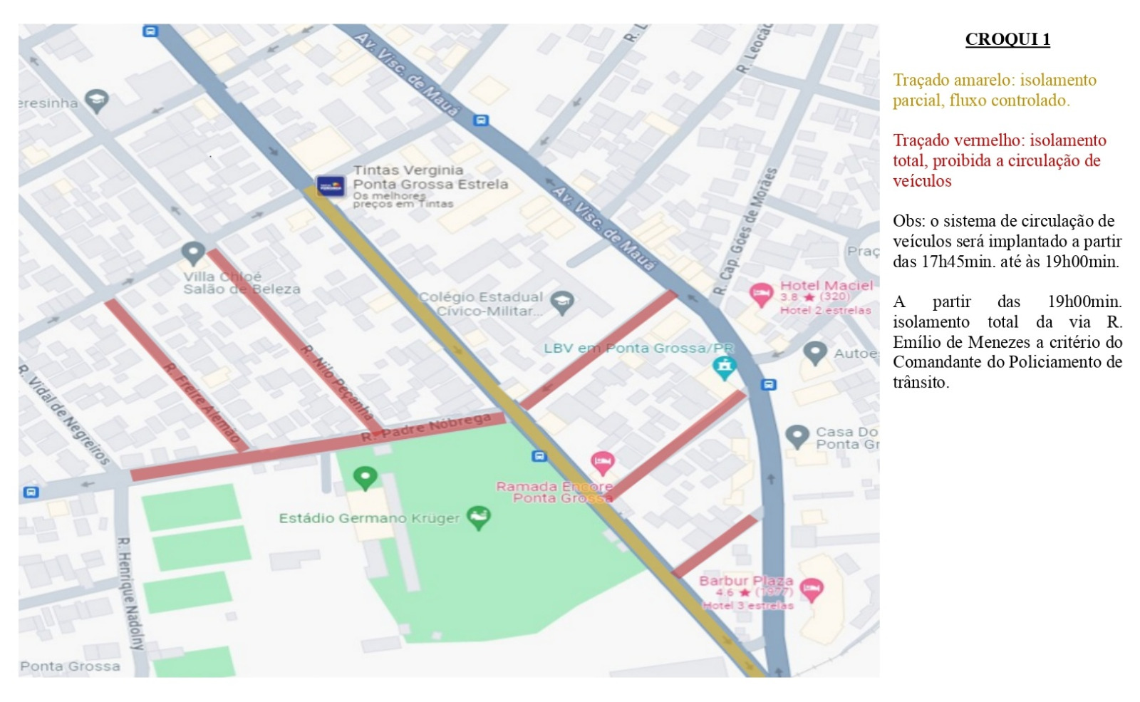 A partir das 19 horas, a rua Emílio de Menezes poderá ser totalmente isolada, conforme decisão do Pelotão de Trânsito.
