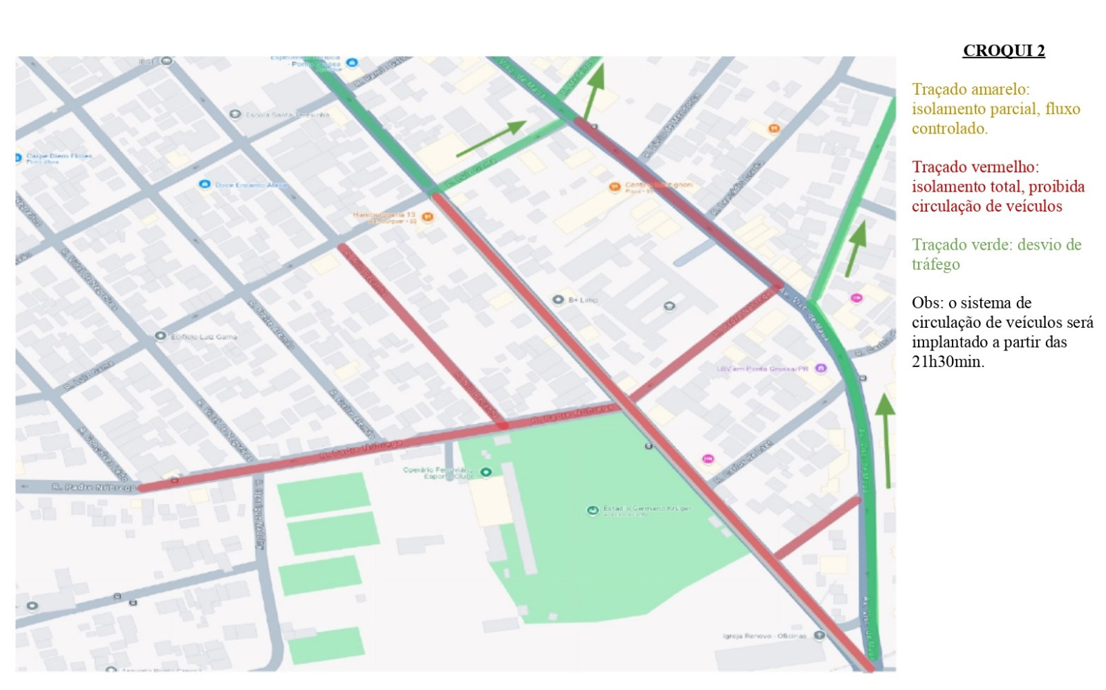 Traçado vermelho: Isolamento total, proibida a circulação de veículos;