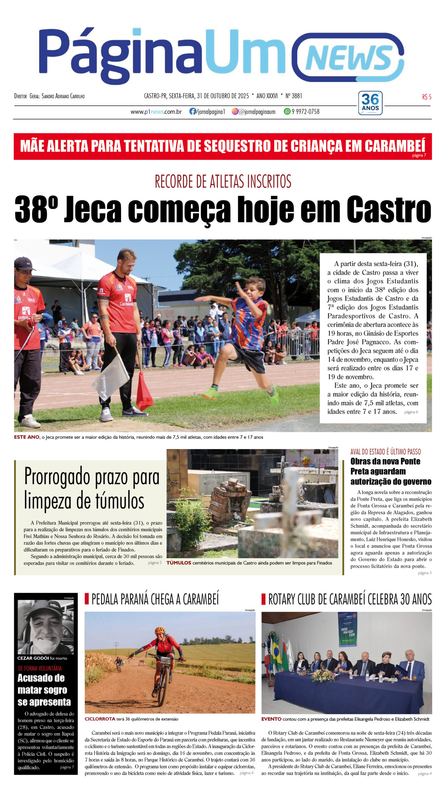 EDIÇÃO 3881 Impresso By Redação Página 1 On 30 out, 2025 0 0 Share Participe da comunidade no WhatsApp do PáginaUm News e receba as principais notícias dos campos gerais direto na palma da sua mão. ENTRE NA COMUNIDADE. 0 0 Share