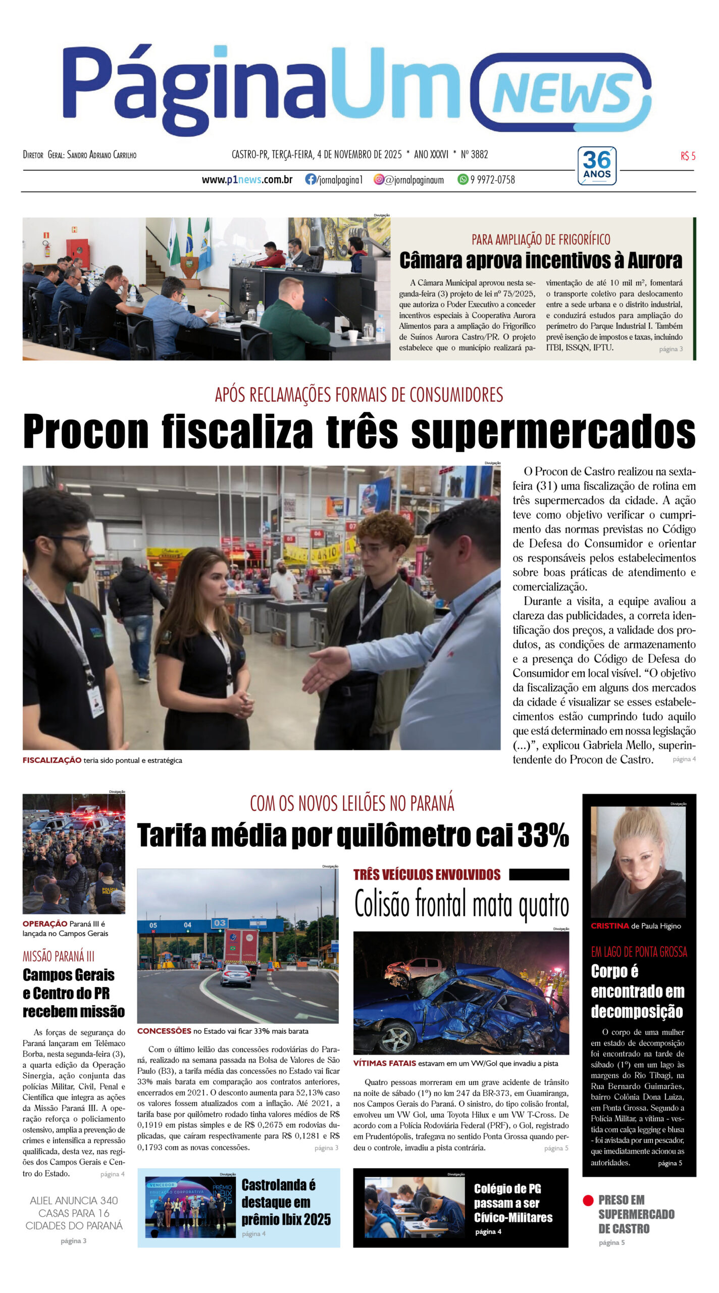 EDIÇÃO 3882 Impresso By Redação Página 1 Last updated 3 nov, 2025 0 24 Share Participe da comunidade no WhatsApp do PáginaUm News e receba as principais notícias dos campos gerais direto na palma da sua mão. ENTRE NA COMUNIDADE. 0 24 Share