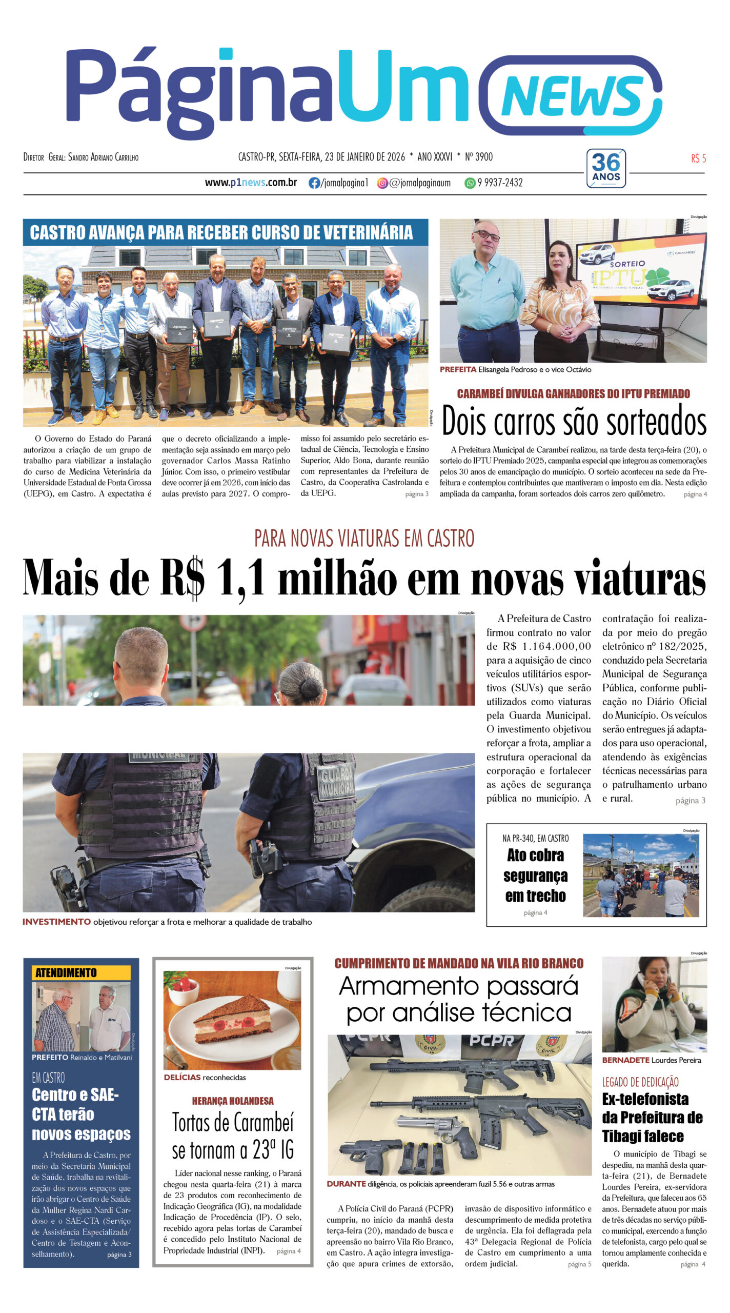 EDIÇÃO 3900 Impresso By Redação Página 1 On 22 jan, 2026 0 3 Share Participe da comunidade no WhatsApp do PáginaUm News e receba as principais notícias dos campos gerais direto na palma da sua mão. ENTRE NA COMUNIDADE. 0 3 Share