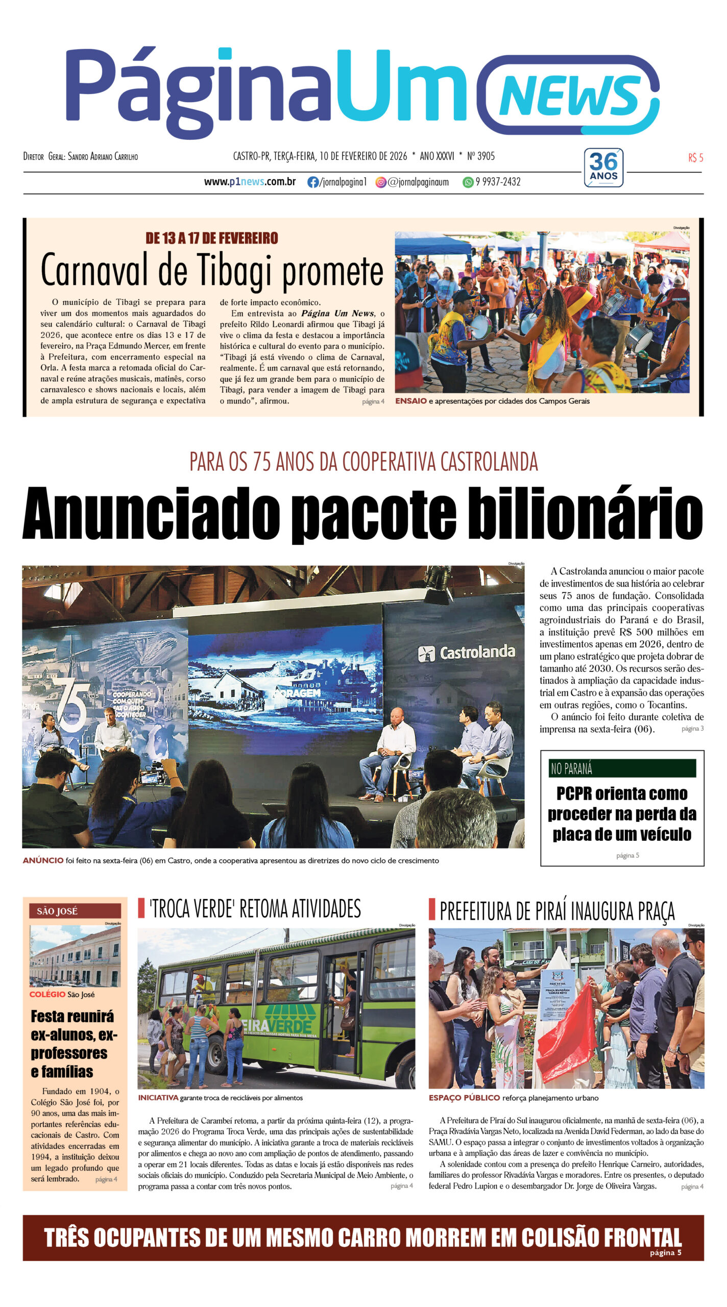 EDIÇÃO 3905 Impresso By Redação Página 1 On 9 fev, 2026 0 5 Share Participe da comunidade no WhatsApp do PáginaUm News e receba as principais notícias dos campos gerais direto na palma da sua mão. ENTRE NA COMUNIDADE. 0 5 Share