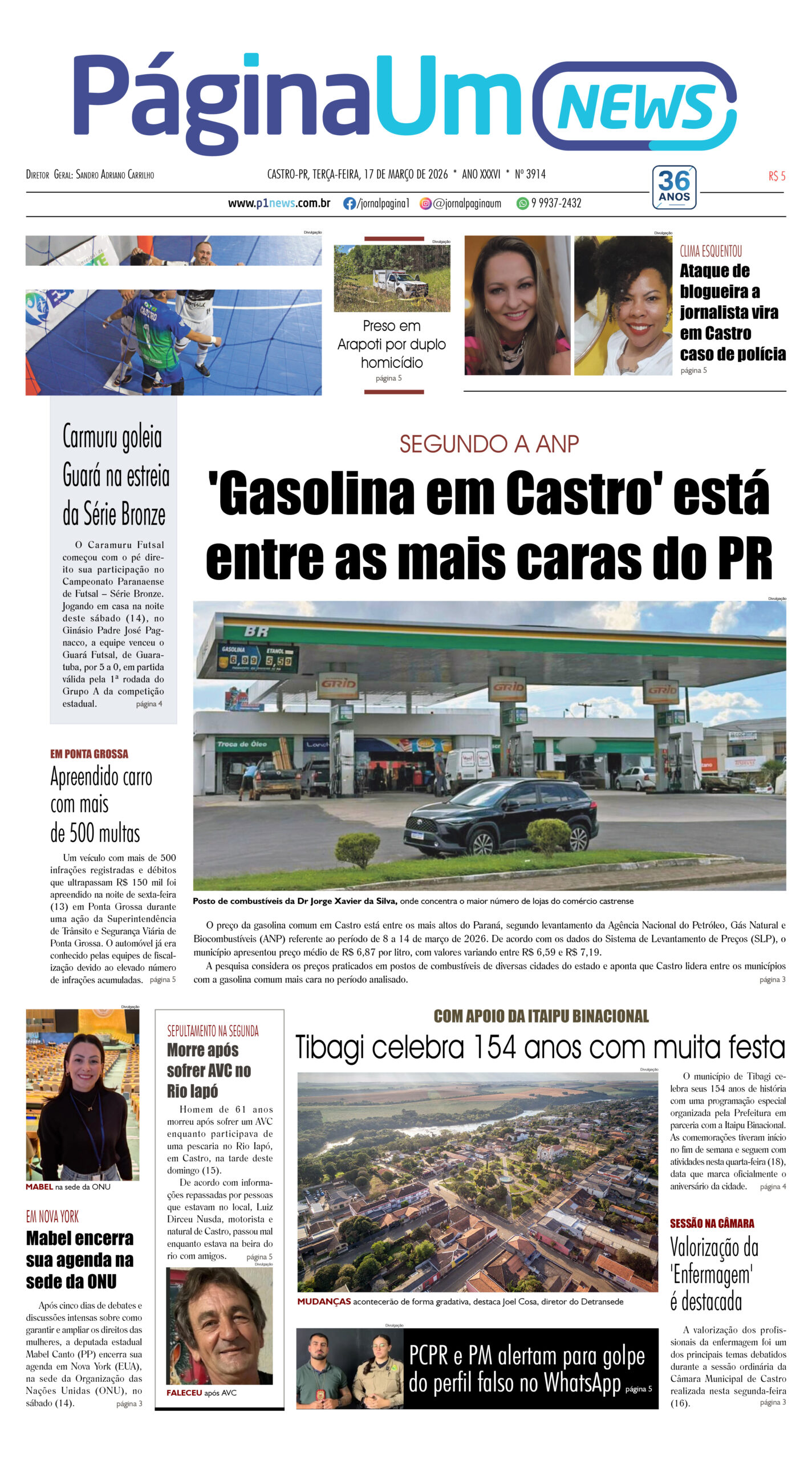 EDIÇÃO 3914 Impresso By Redação Página 1 On 16 mar, 2026 Share Participe do grupo no WhatsApp do PáginaUm News e receba as principais notícias dos campos gerais direto na palma da sua mão. ENTRE NO GRUPO. Share