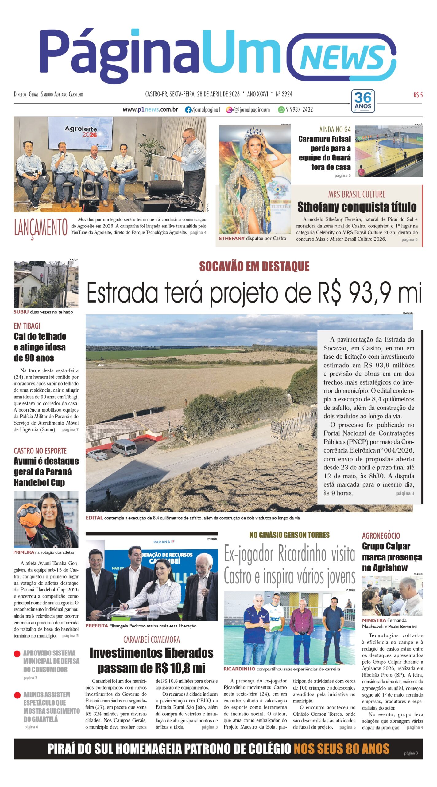 EDIÇÃO 3924 Impresso By Redação Página 1 On 27 abr, 2026 Share Participe do grupo no WhatsApp do PáginaUm News e receba as principais notícias dos campos gerais direto na palma da sua mão. ENTRE NO GRUPO. Share