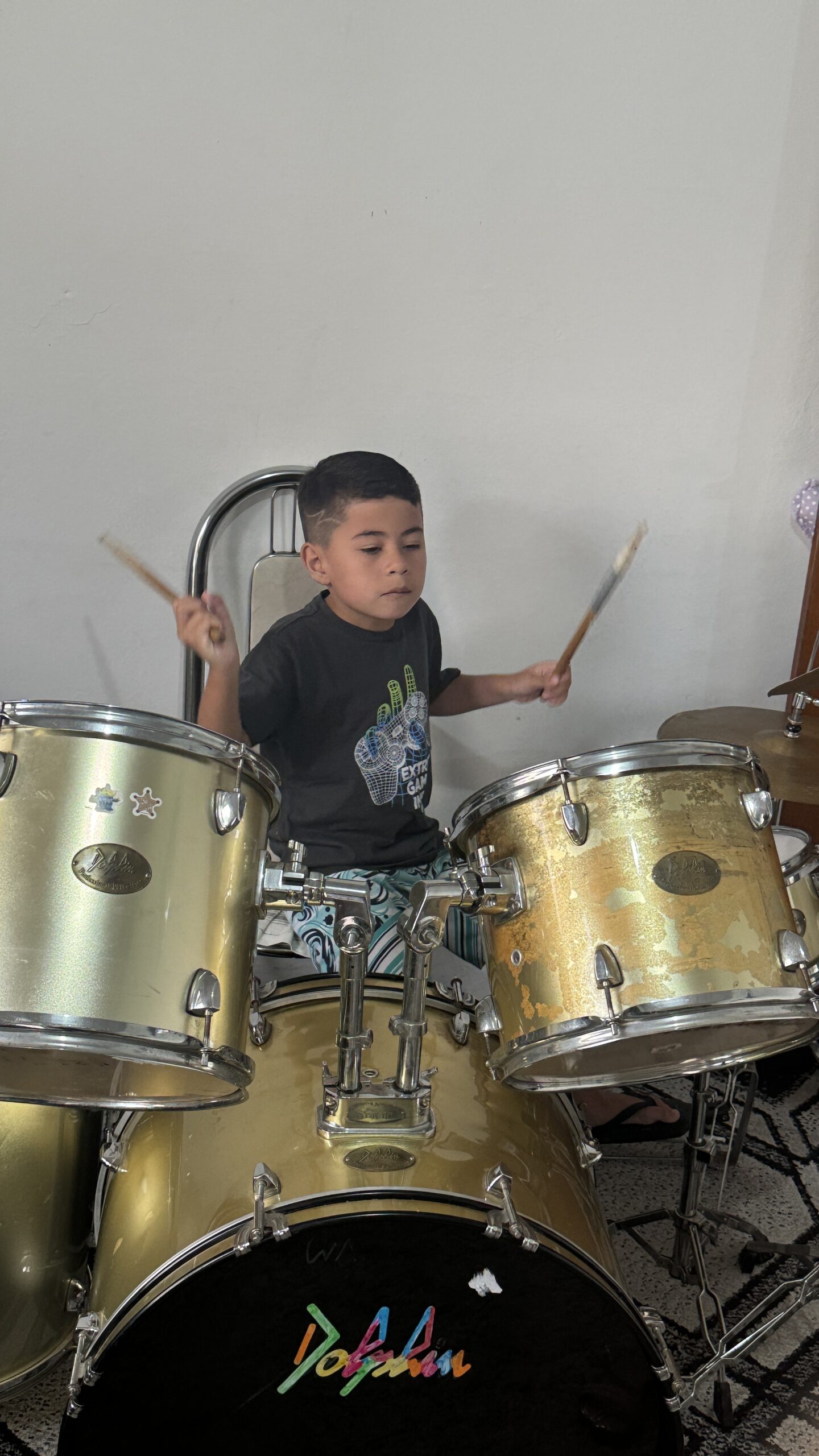 Sua jornada musical iniciou aos 3 anos e meio, utilizando panelas, baldes e uma bateria infantil como instrumentos de percussão caseiro.