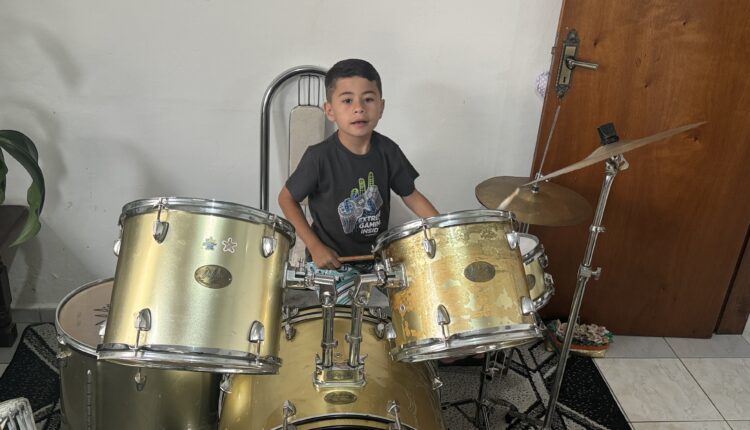 ASSISTA AO VÍDEO: Criança de 5 anos mostra talento para a música e se destaca tocando bateria em Castro