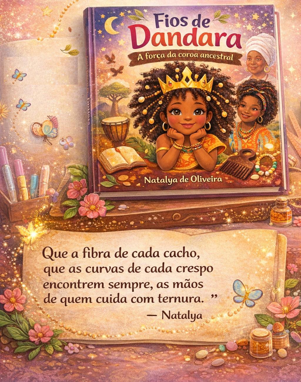 “Escrevi esse livro com todo o amor que eu sinto pela minha ancestralidade e pela minha história”, destaca a autora. Segundo Natalya, a proposta é transformar o momento do cuidado com o cabelo crespo — muitas vezes associado à dor — em um gesto de carinho, pertencimento e valorização.