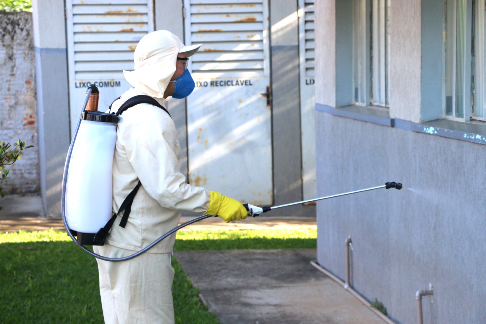 A estratégia é chamada de Borrifação Residual Intradomiciliar (BRI) e se mostrou eficaz na redução do número de infecções pela dengue nas áreas em que foi implantada. A agente de endemias e supervisora da ação Vanessa Bueno explica que o inseticida é borrifado nas paredes internas e externas dos prédios públicos. “Após a aplicação, os espaços ficam protegidos contra o mosquito por quatro meses”.