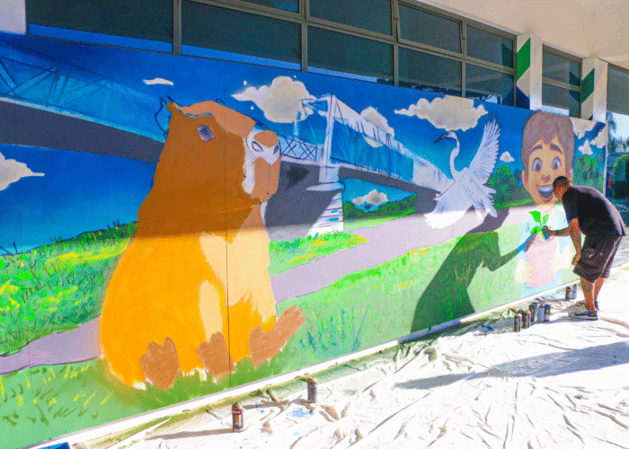 O painel criado para Castro traz elementos símbolos do município: uma capivara, uma garça e uma figura humana com uma muda de planta, representando as raízes do futuro, referência à distribuição de mudas promovida pelo Ceju. A proposta foi definida em diálogo com a Secretaria da Juventude.