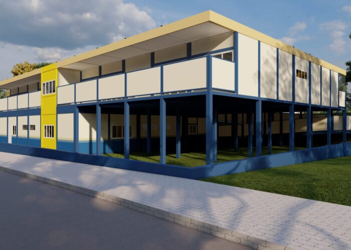 “Na parte inferior ficará o refeitório, enquanto as salas de aula estarão no pavimento superior, com acesso por rampas e sistema de prevenção de incêndio. São espaços preparados para crianças pequenas, com fraldário, lactário e banheiras. O projeto modular tem essa característica de vir pronto e adaptado para esse tipo de atendimento”, explica a secretária municipal de Educação, Luciane Farias.