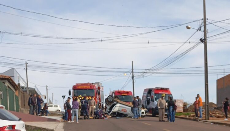 Segundo informações repassadas pelas equipes de socorro, o acidente envolveu um GM Celta prata e um Fiat Mobi branco. Com o impacto da batida, o Mobi acabou capotando.
