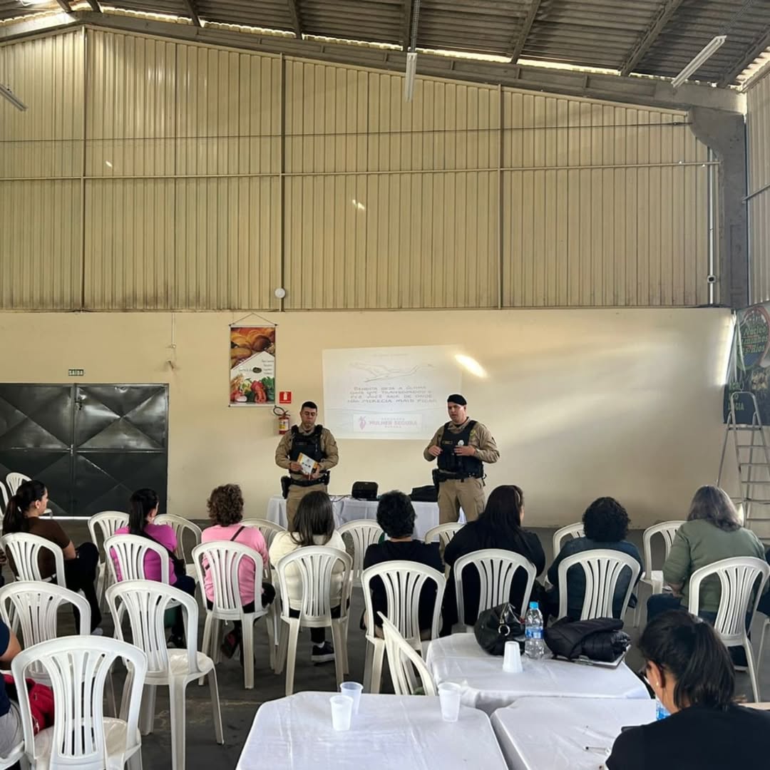 No período da tarde, o evento seguiu no Mercado do Produtor, no centro da cidade, reunindo cerca de 30 mulheres da zona rural para uma conversa sobre segurança no campo, direitos das mulheres e os serviços oferecidos pela Patrulha Rural e pela equipe Maria da Penha.