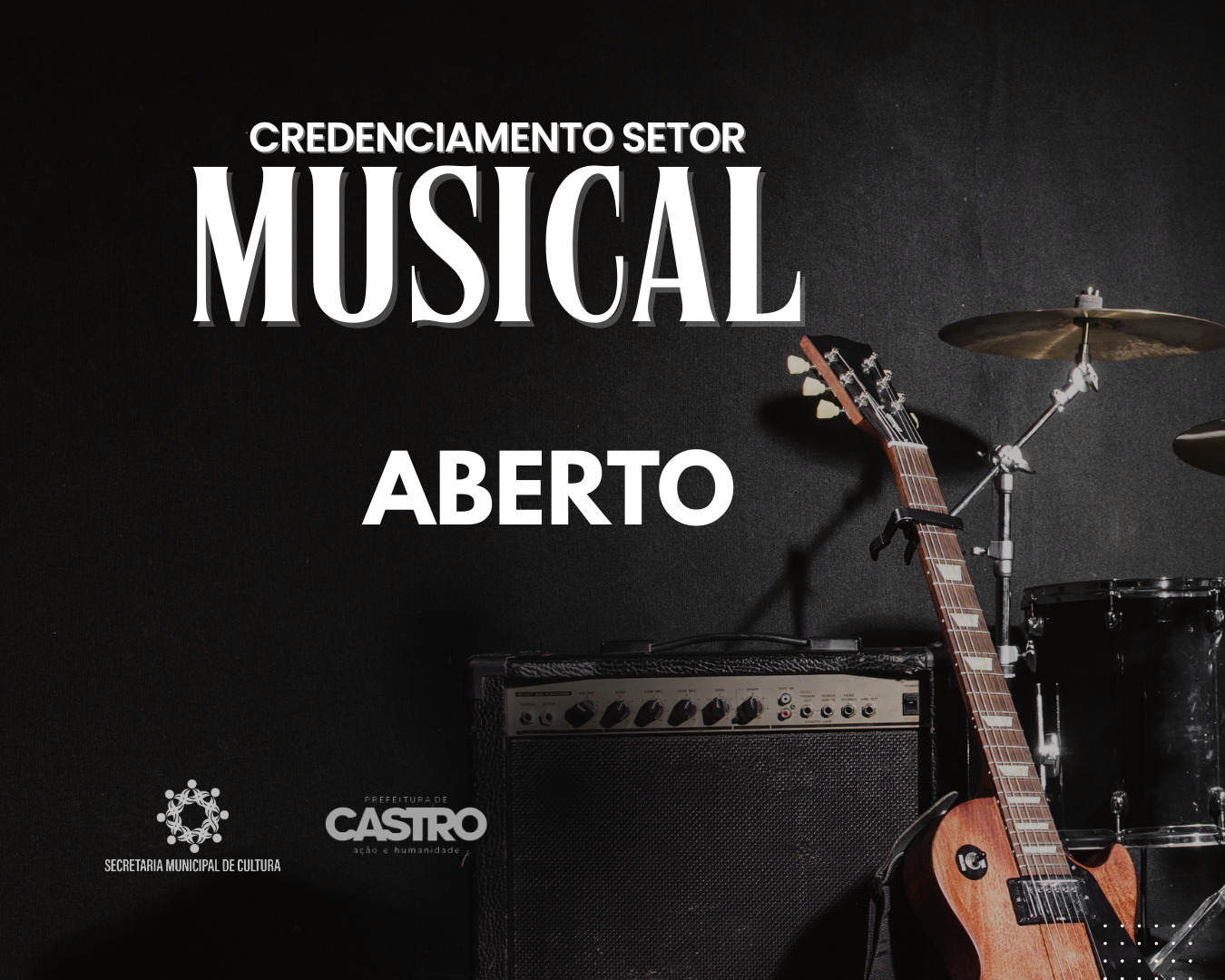 Castro – A Prefeitura de Castro, por meio da Secretaria Municipal de Cultura, informa que já está aberto o credenciamento para músicos locais interessados em integrar o banco de talentos do município.