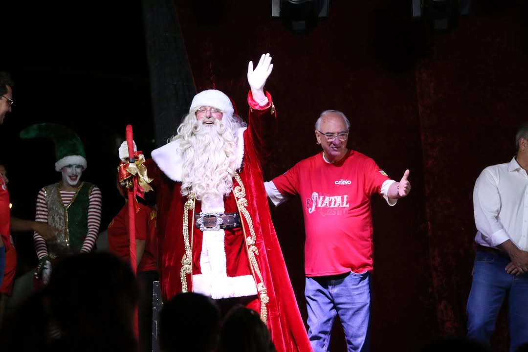 A caravana natalina percorreu ruas da cidade e encerrou seu trajeto no Parque Lacustre, onde o público foi recepcionado por apresentações especiais, entre elas a performance da Turma da Alegria, com bonecos humanizados, e da Trupe do Papai Noel.