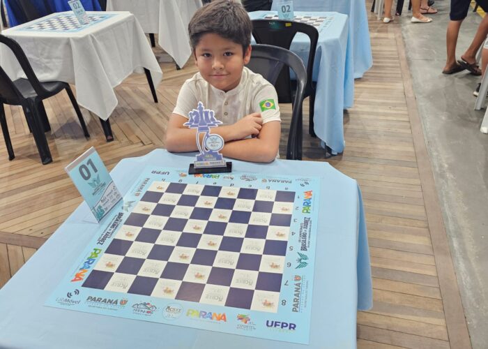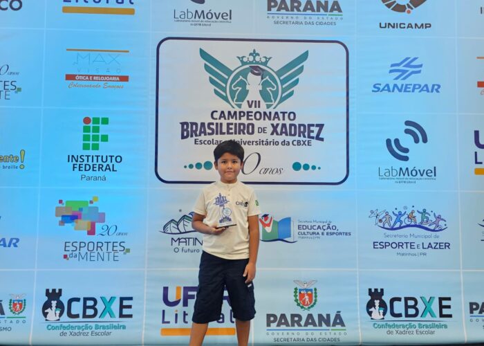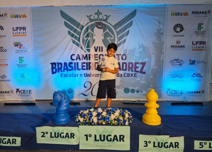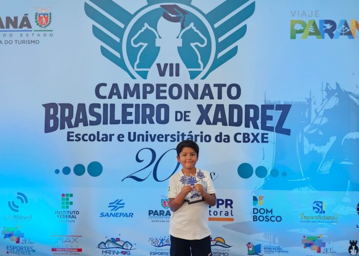 Castro – O jovem enxadrista castrense Felipe Lamadrid, de apenas 8 anos, conquistou o título de campeão brasileiro escolar de xadrez 2026 de forma invicta, durante o Campeonato Brasileiro de Xadrez Escolar e Universitário, realizado entre os dias 26 e 29 de março, em Matinhos, no litoral do Paraná.