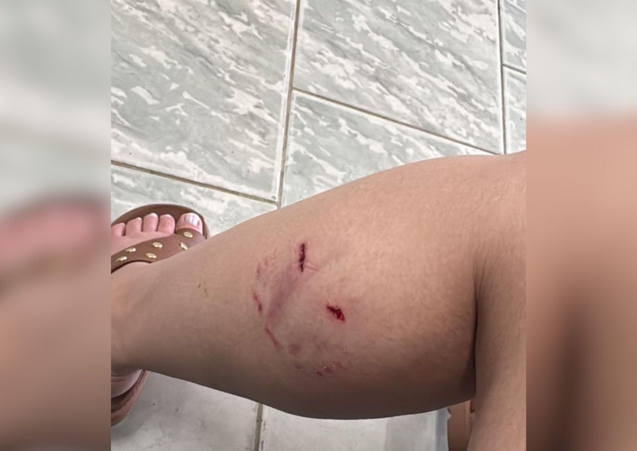 “Na manhã de quarta-feira (1º), estava passando de bicicleta pela Rua Alfredo de Oliveira Ávila, quando fui atacada por vários cachorros que estavam na rua, um deles mordeu minha perna esquerda. Eu grávida de 33 semanas, não foi o caso, mas poderia ter caído da bicicleta com o ataque dos cachorros”, contou Emilene ao Página Um News.
