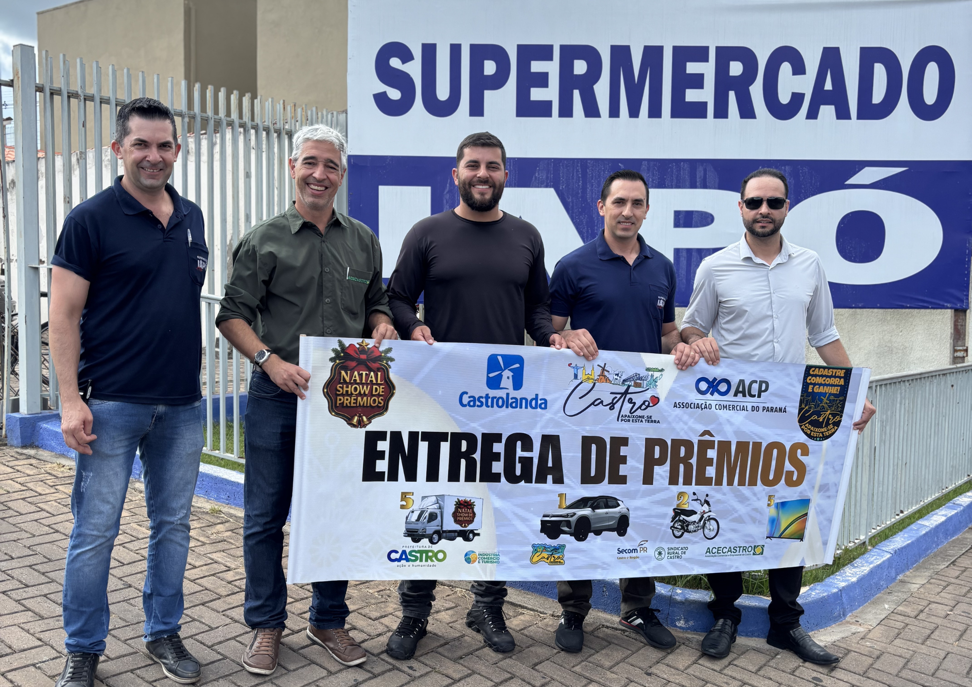 A entrega foi realizada no Supermercado Iapó, local onde Amilton efetuou as compras que o habilitaram a participar da promoção. O ato contou com a presença do secretário municipal de Indústria, Comércio e Turismo, Kasciano Roberto Morais, que também é presidente da Sociedade Empresarial do Comércio de Castro (Secom), além de representantes da ACP e da Acecastro (Associação Comercial e Empresarial de Castro). O gerente comercial da Acecastro, Leandro Pikunik, também acompanhou a entrega.
