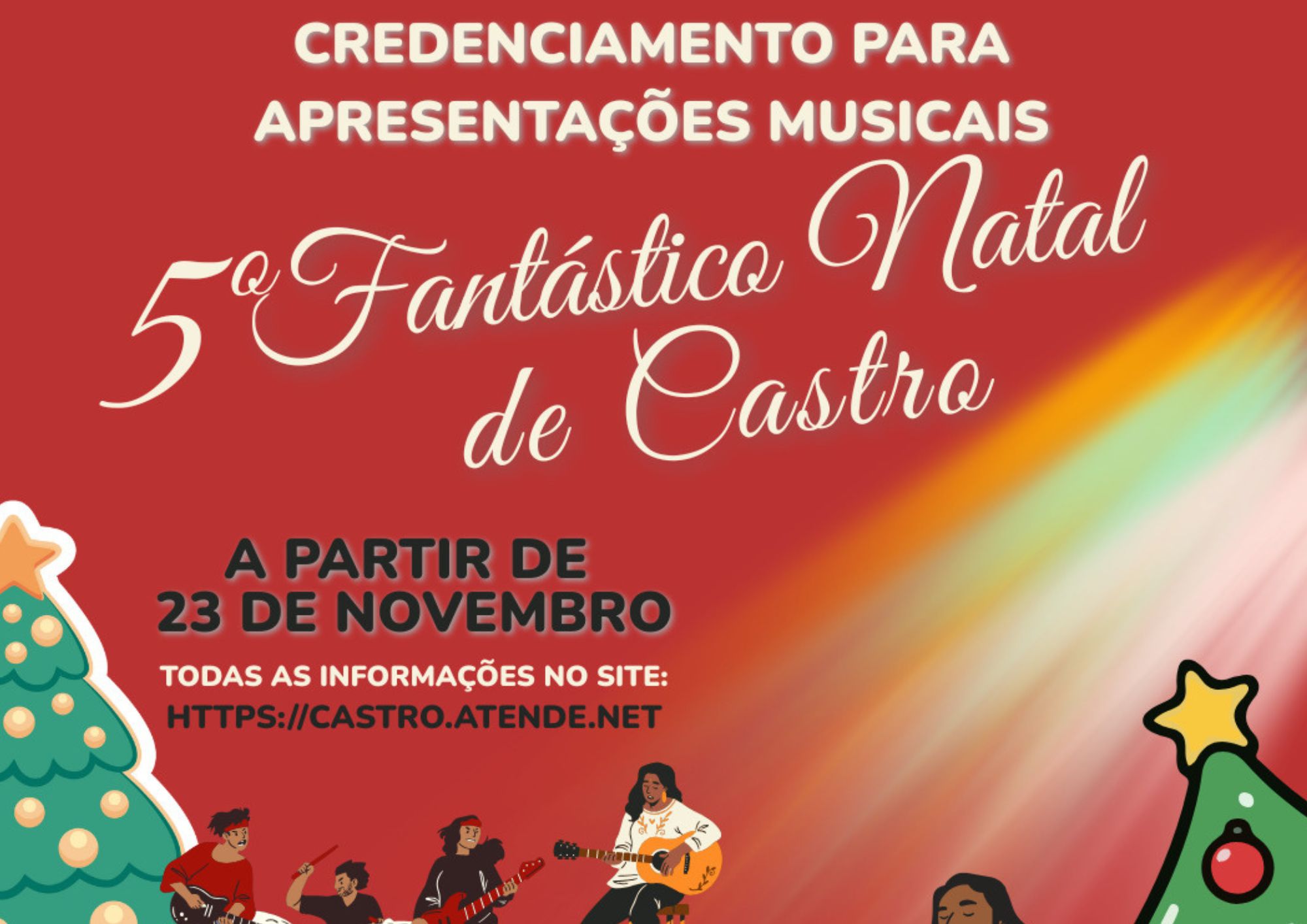 Castro – A Prefeitura Municipal abriu o credenciamento de artistas locais interessados em compor a programação musical do 5º Fantástico Natal de Castro, que acontecerá entre 4 e 23 de dezembro no Parque Lacustre.