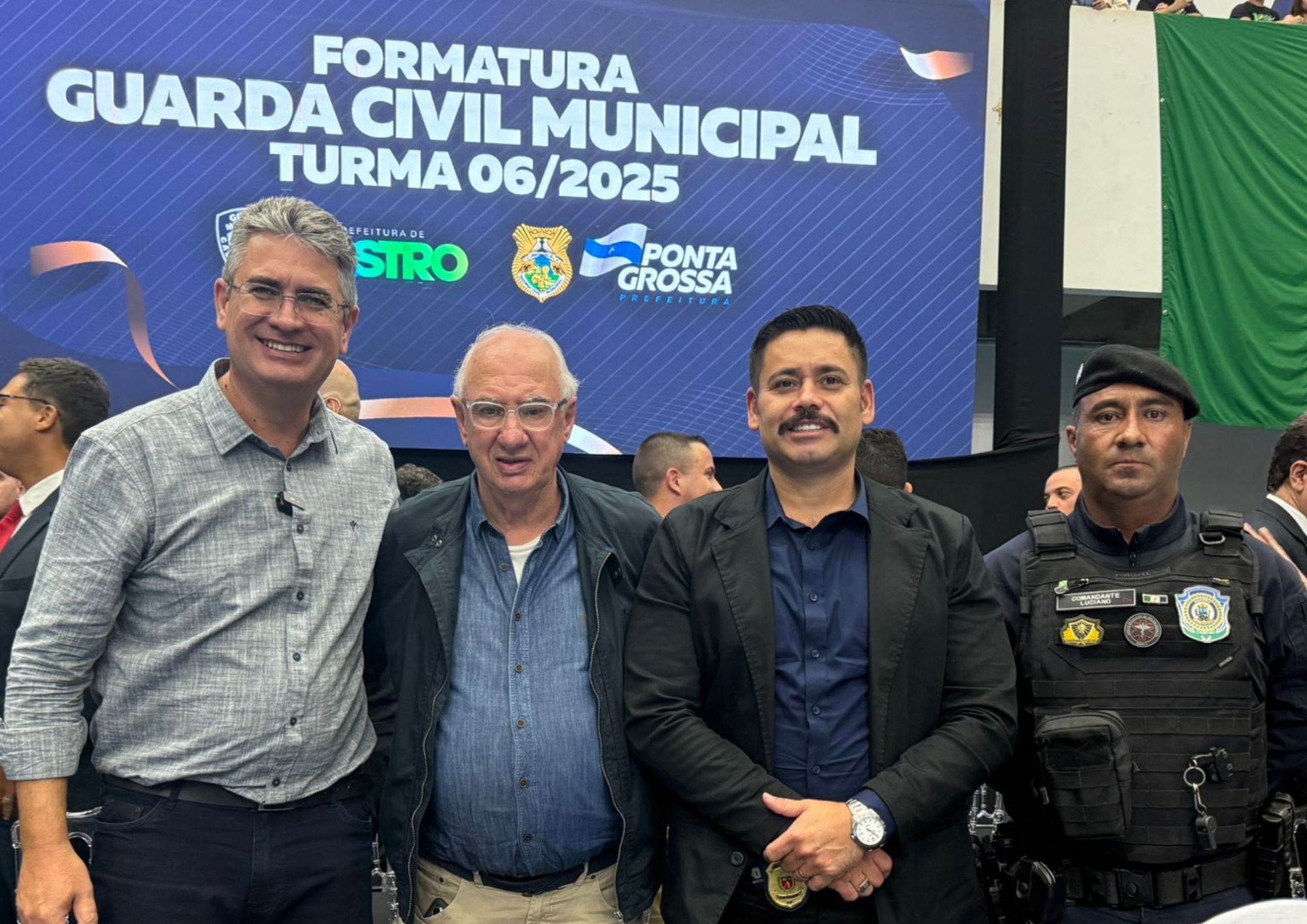 A solenidade de formatura aconteceu na noite desta quarta-feira (29), na Arena Multiuso, em Ponta Grossa, junto com os agentes da Guarda Municipal da cidade vizinha. Ao todo, 118 agentes receberam o certificado de conclusão, são 100 de Ponta Grossa e 18 de Castro.