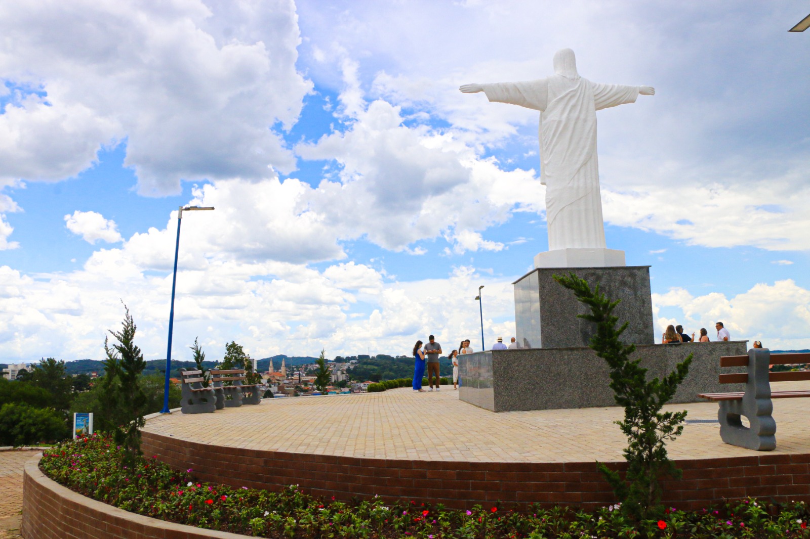 Assim como o Cristo Redentor do Rio de Janeiro, a estátua em Castro abençoa a cidade e proporciona uma vista de 360 graus, sendo um local perfeito para apreciar a paisagem, o pôr do sol e tirar fotos, especialmente do Centro Histórico e do Parque Lacustre.